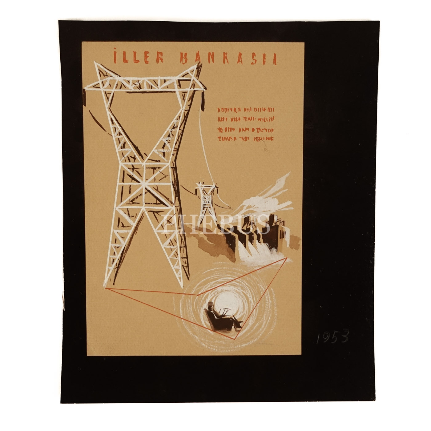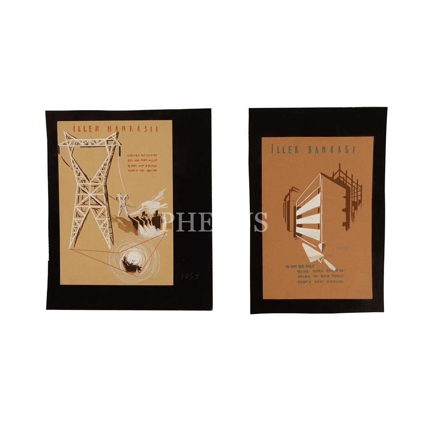 Mesut Manioğlu´nun, İller Bankası reklam afişi için hazırladığı taslak çizimleri (2 adet), 1953, 13x19 cm...