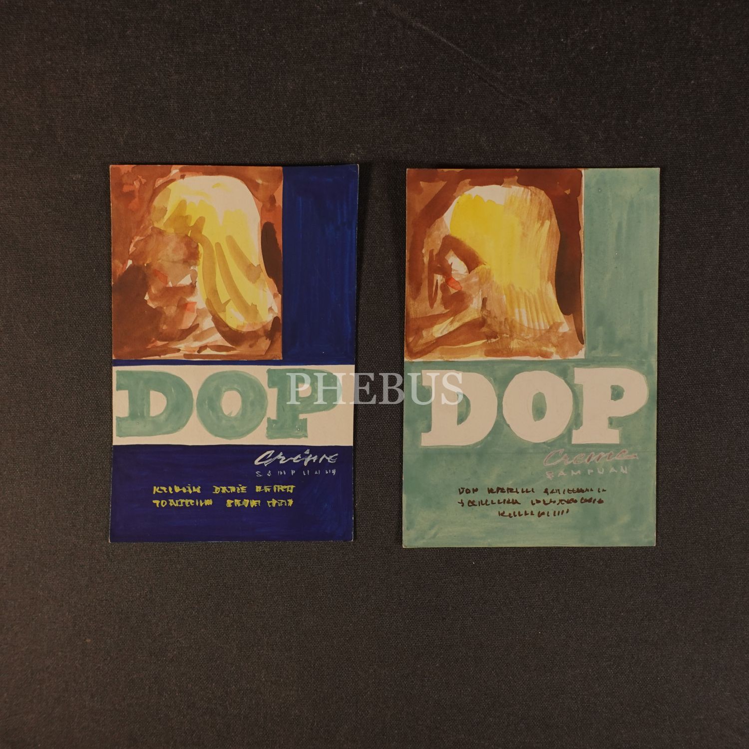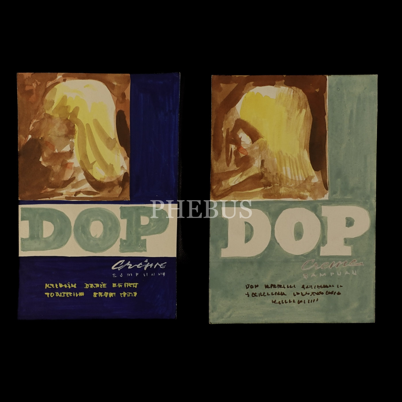 Mesut Manioğlu´nun, DOP Creme Şampuan reklam afişi için hazırladığı taslak çizimleri, 10x15 cm...