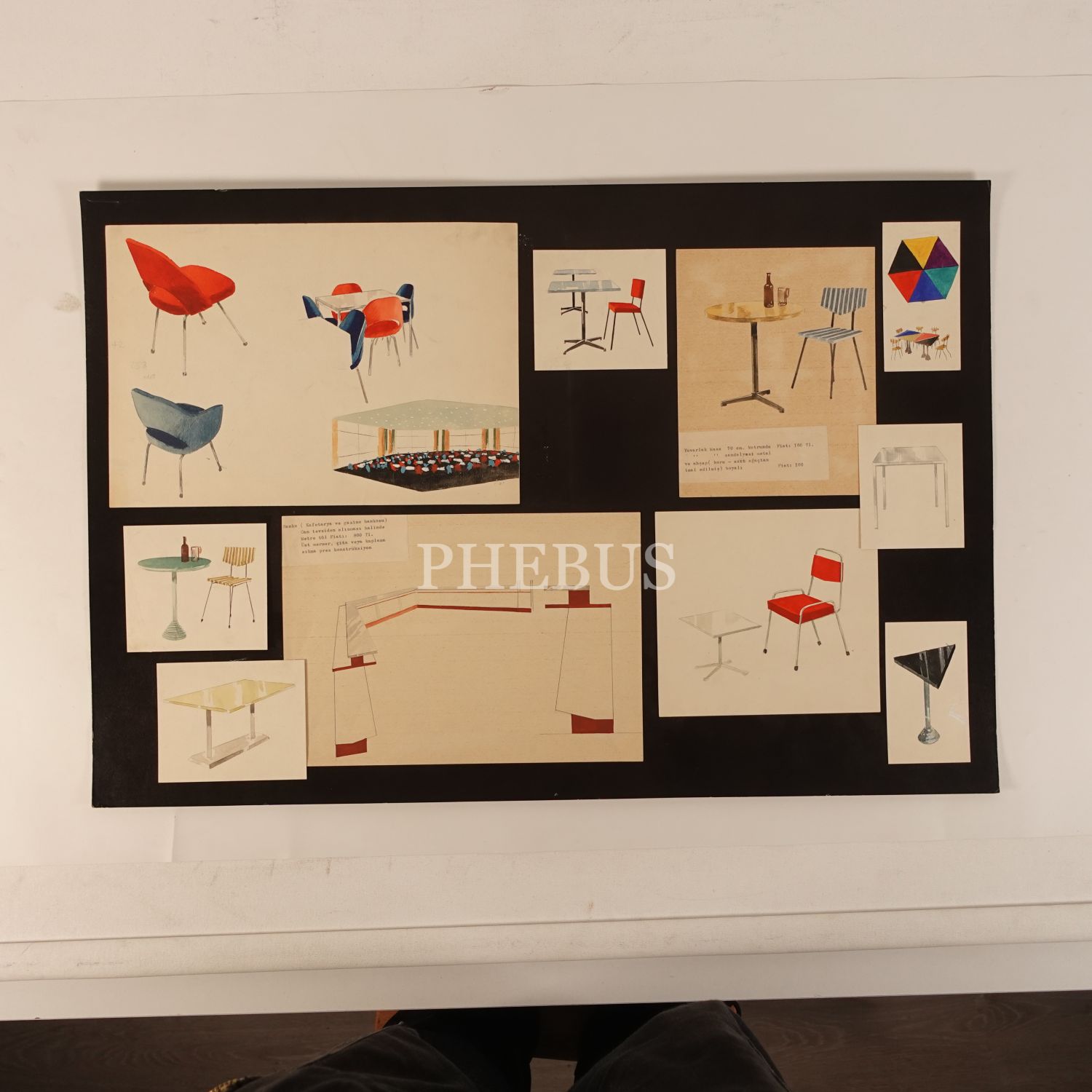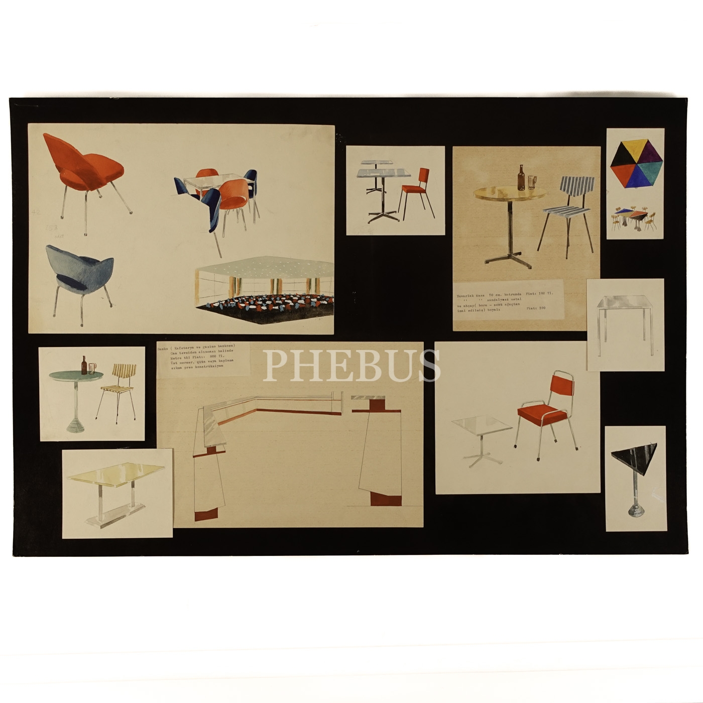 Mesut Manioğlu´nun, bir yapının iç mimarisi için hazırladığı masa, sandalye ve sepha çizimleri, muhtelif ebatlarda (en büyüğü 32x22 cm, en küçüğü 6,5x11 cm)...