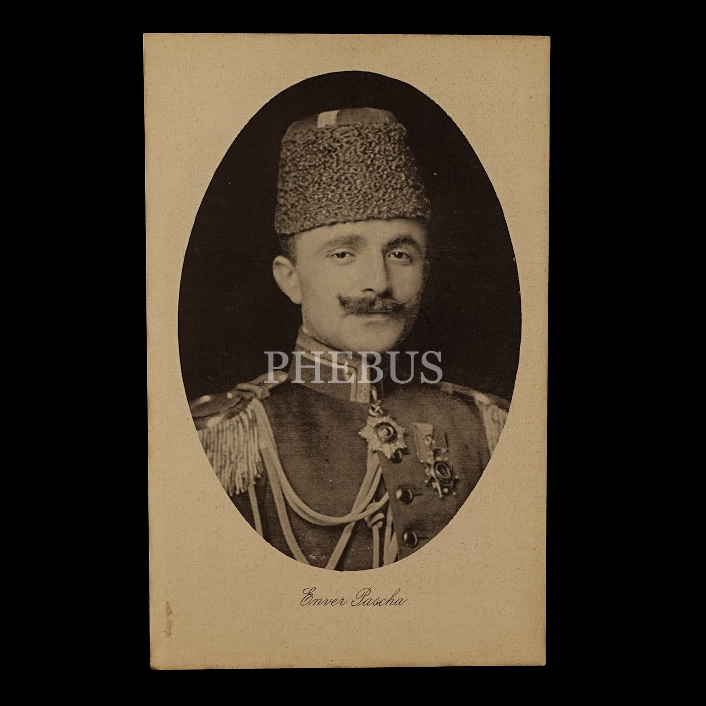 Cihan Harbi yıllarından Harbiye Nazırı Enver Paşa görselli kartpostal, "Enver Pascha", 9x14 cm...