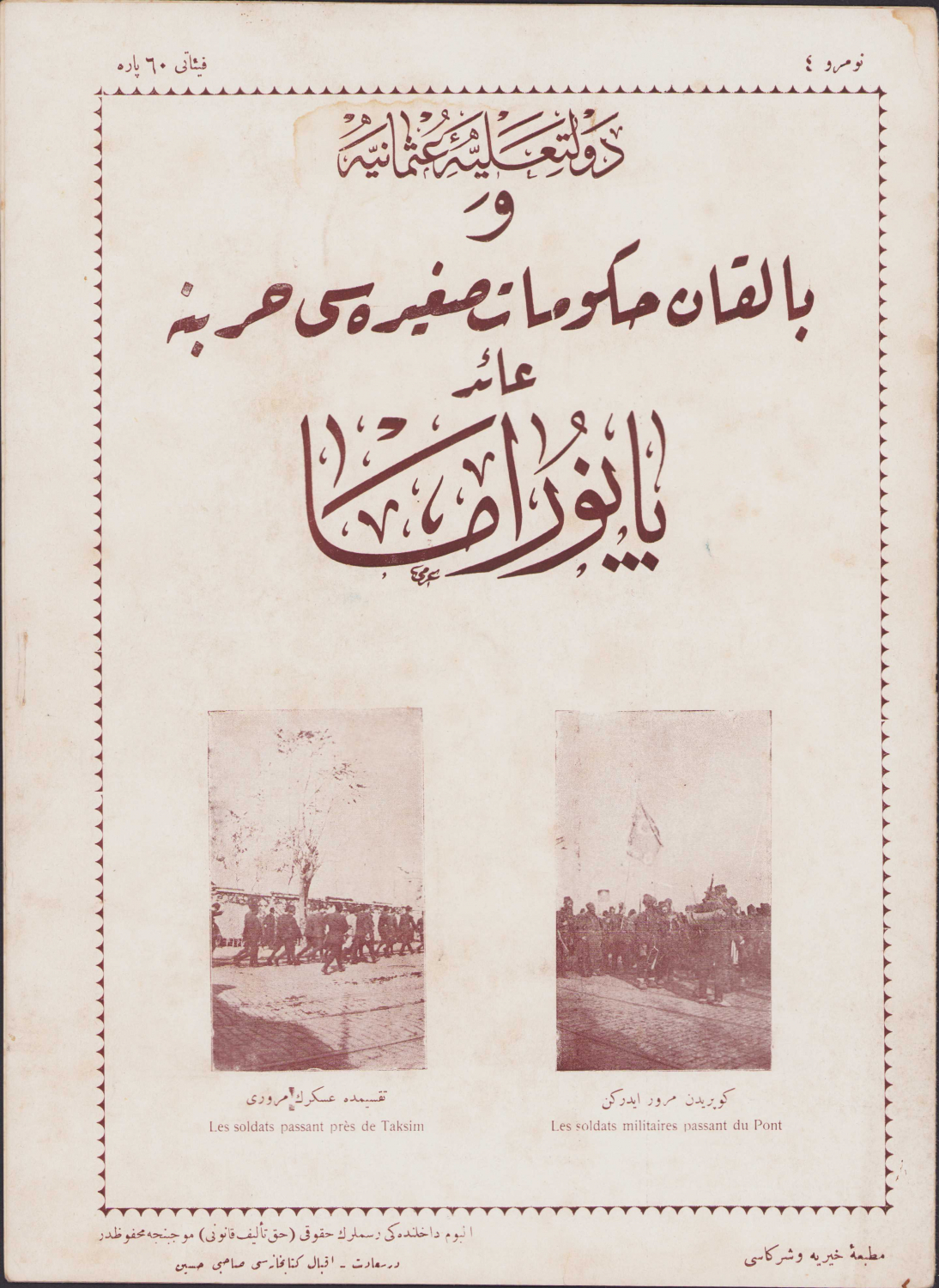 Balkan Savaşı Propaganda Albümü, Fransızca-Osmanlıca yazılı, bol görselli 8 sayfa, Constantinople baskısı