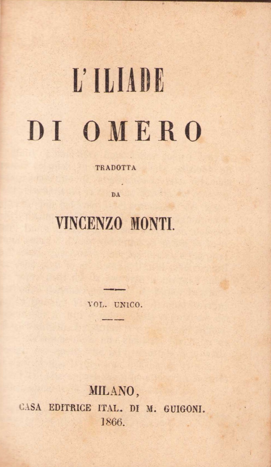 L'Iliade Di Omero, Vincenzo Monti, Milano, 1866, İtalyanca, 560 sayfa, 9x12 cm