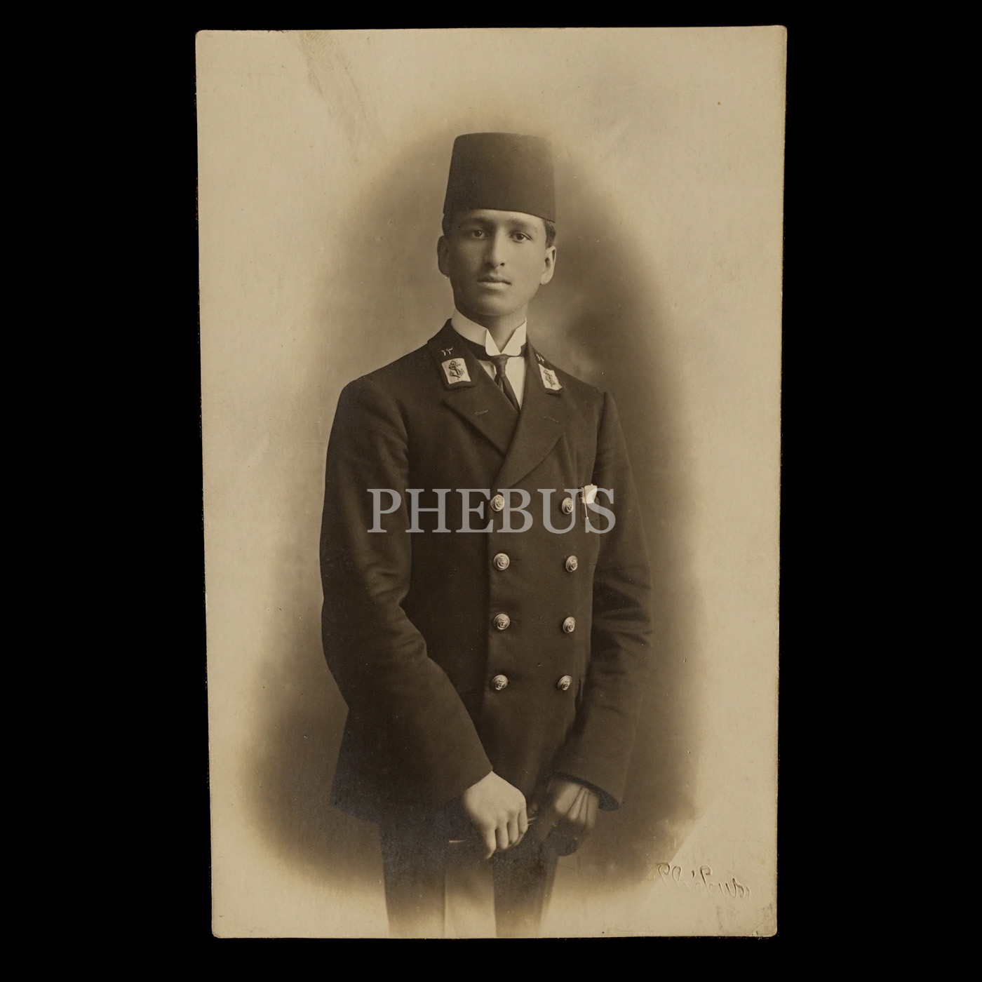 Üniformalı bahriyelinin stüdyo hatıra fotoğrafı, Phebus Fotoğrafhanesi, 25 Mart 1331, 14x9 cm...