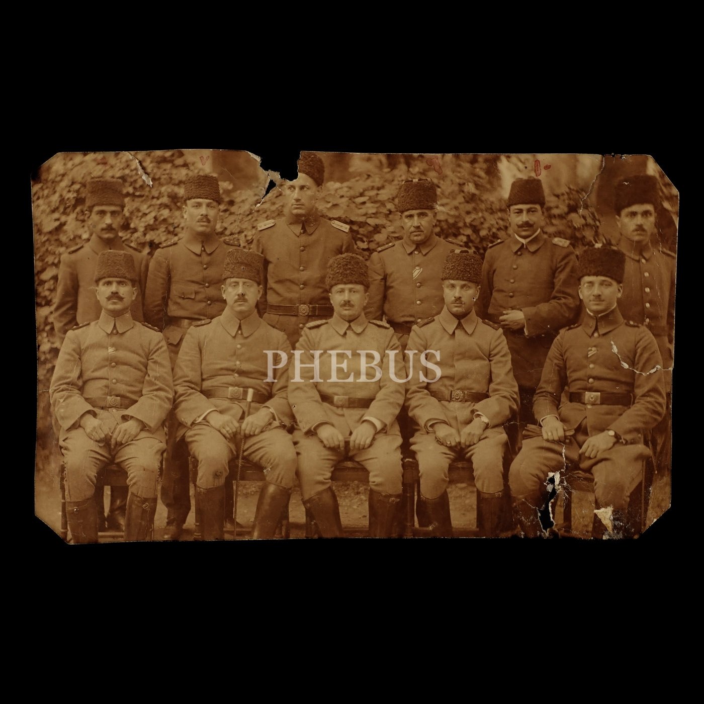 Osmanlı subaylarının toplu hatıra fotoğrafı, 18x10 cm...
