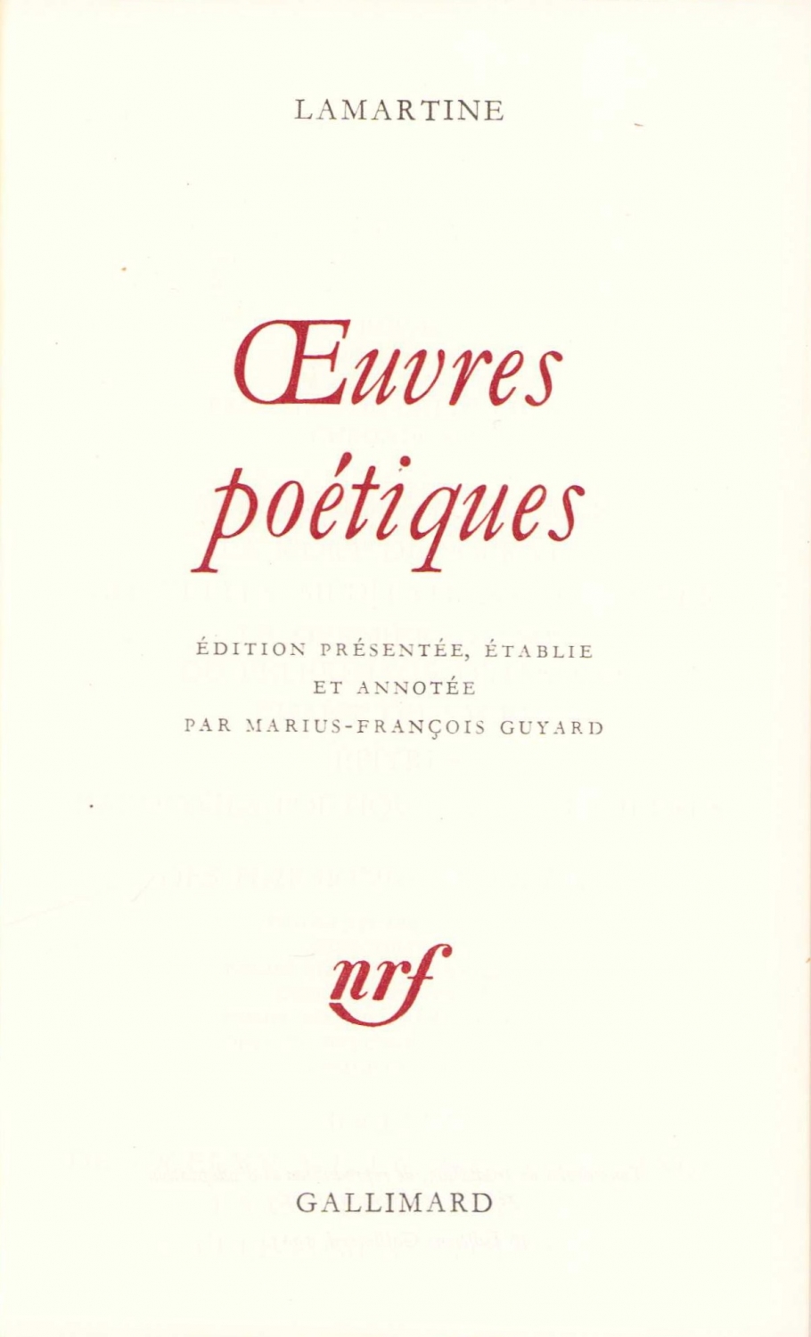 Lamartine, Oeuvres poétiques, Gallimard, 1963, Fransızca, 2070 sayfa, 10x17 cm