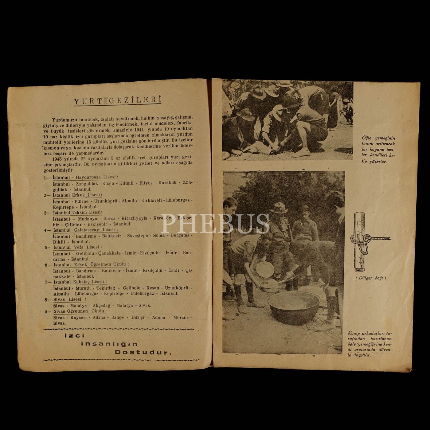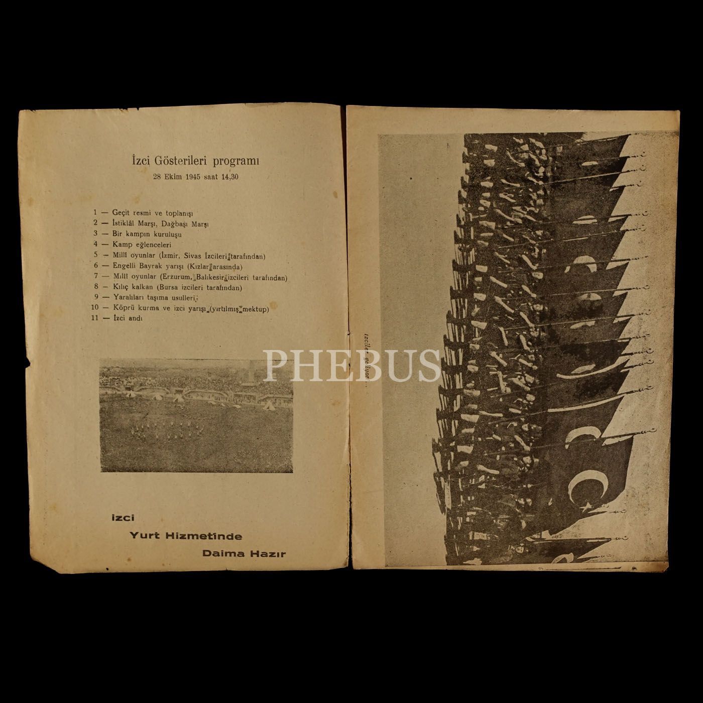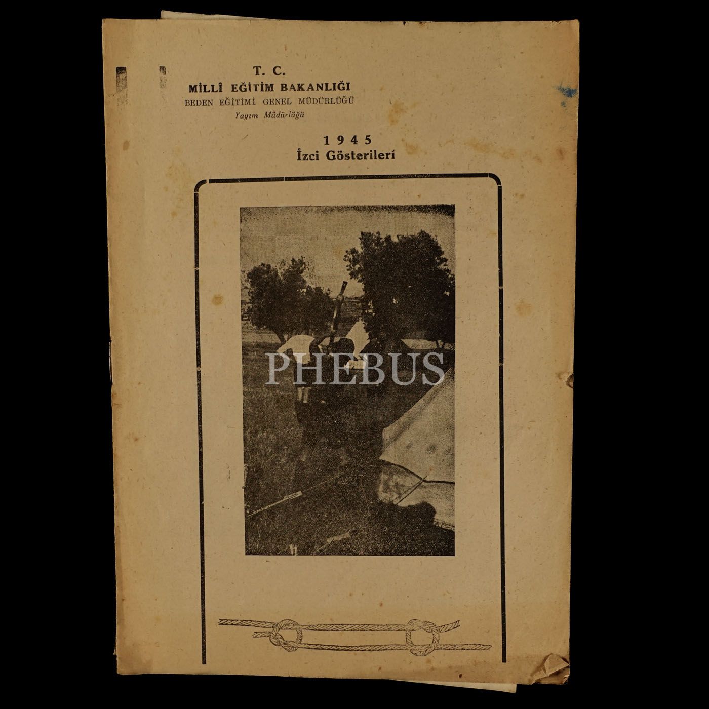 T. C. Milli Eğitim Bakanlığı Beden Eğitimi Genel Müdürlüğü´nün yayımladığı, 1945 İZCİ GÖSTERİLERİ kitapçığı, 17x24 cm...