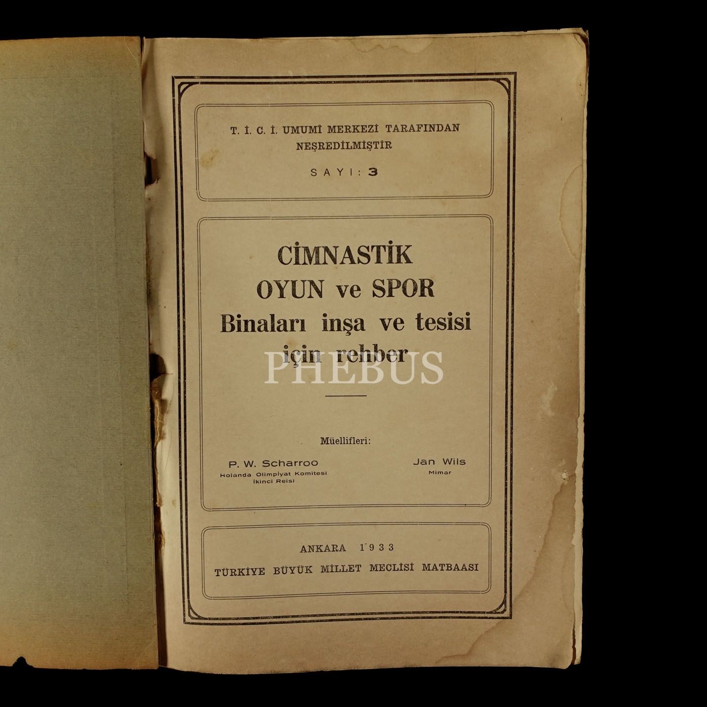 CİMNASTİK OYUN VE SPOR BİNALARI İNŞA VE TESİSİ İÇİN REHBER, P. W. Scharroo, Jan Wils, 1933, Türkiye Büyük Millet Meclisi Matbaası, 195 sayfa, 20x27 cm...