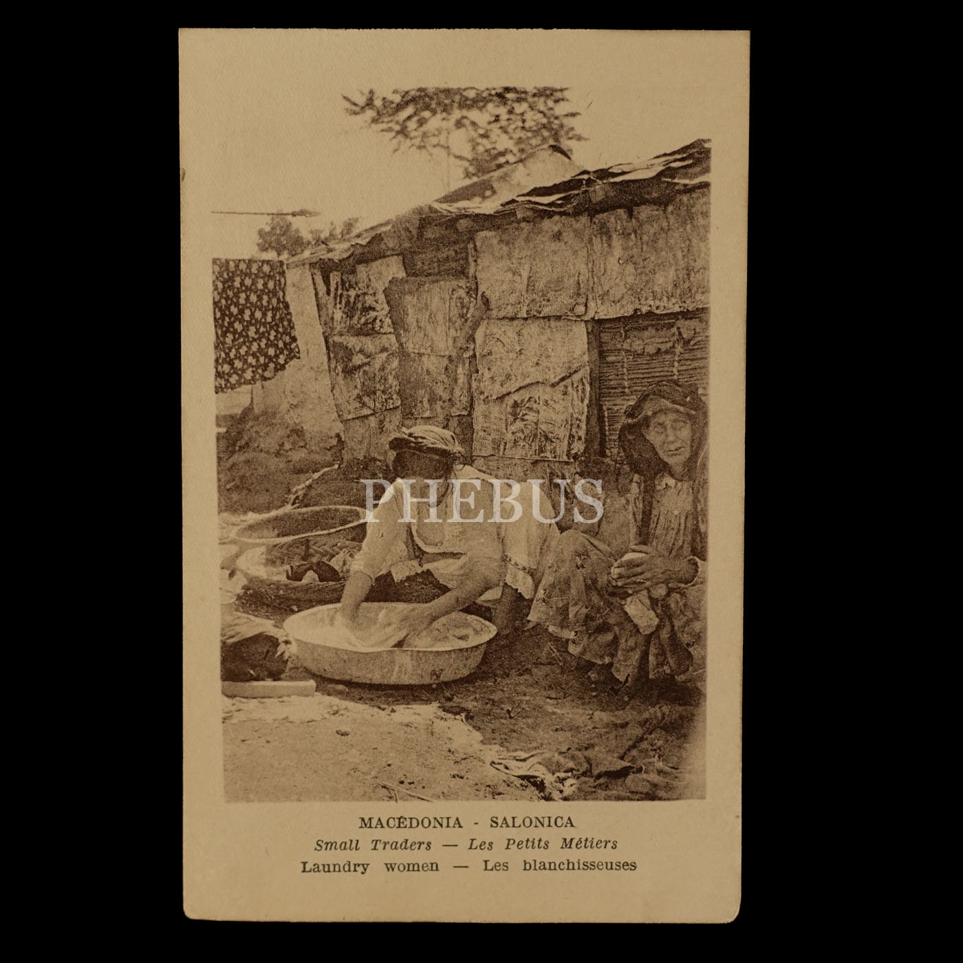 Makedonya - Selanikli çamaşırcı kadınlar, "Small Traders - Laundry women", 14x9 cm...