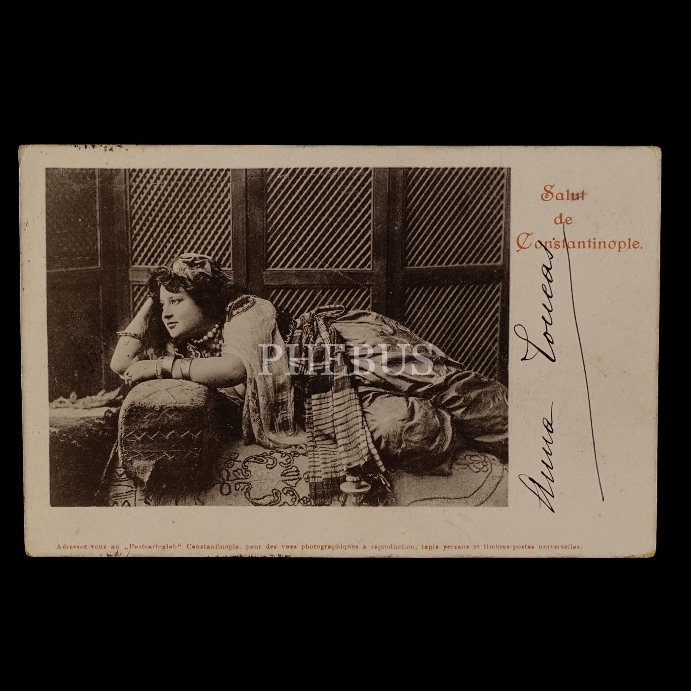 İstanbullu Türk kadını, "Salut de Constantinople", 14x9 cm...