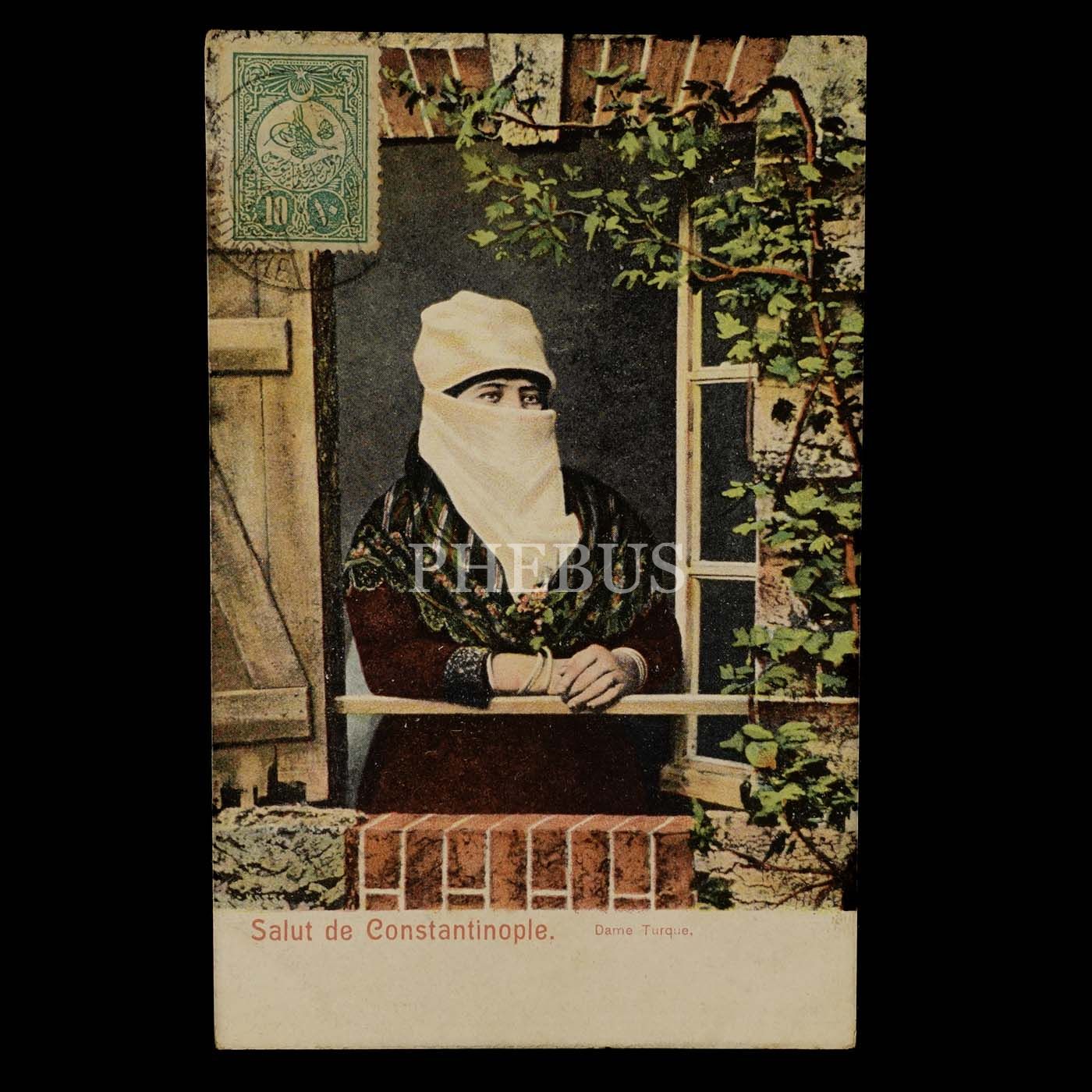 Türk kadını, "Dame Turque - Salut de Constantinople", 9x14 cm...