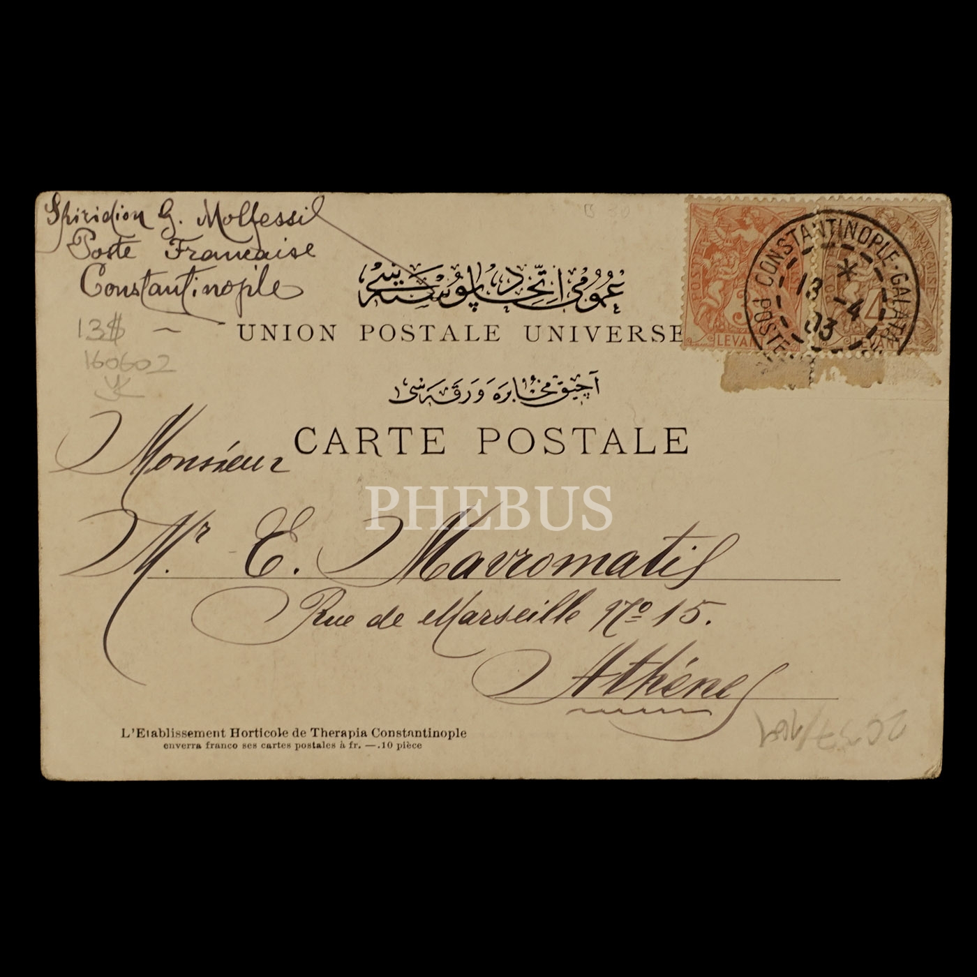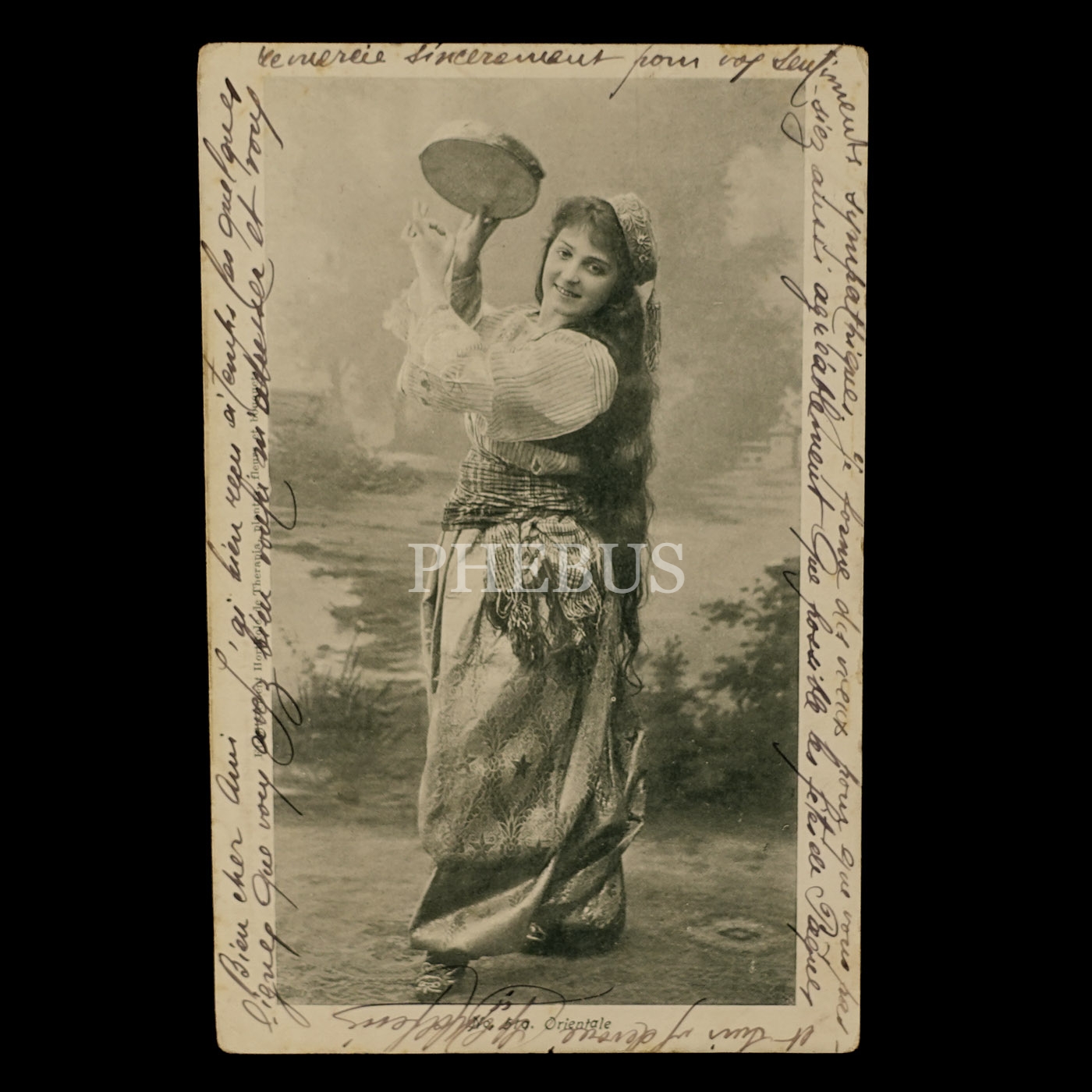 Dansçı Türk kadını, "Orientale", ed. Etablissement Horticole de Therapia, Constantinople, 9x14 cm...