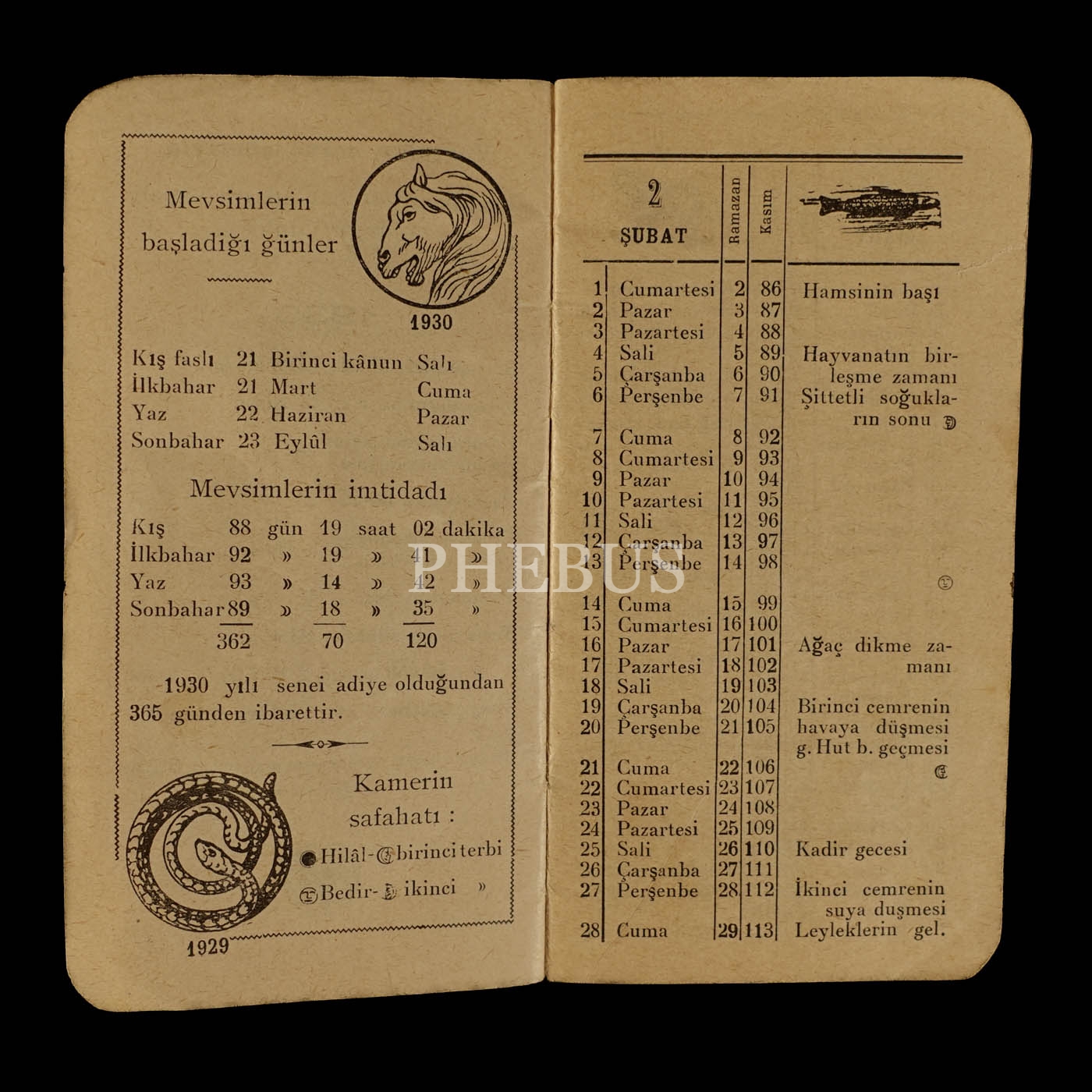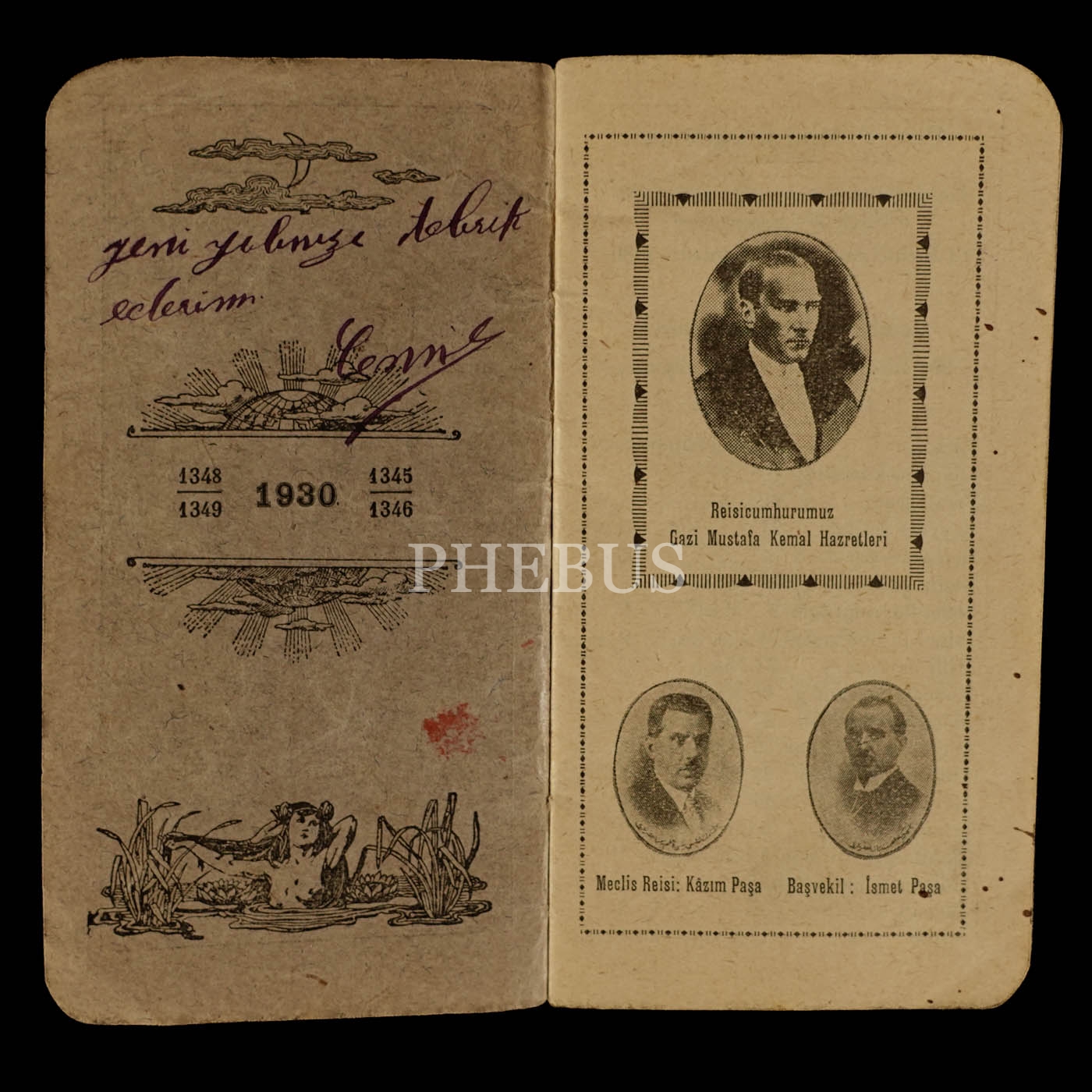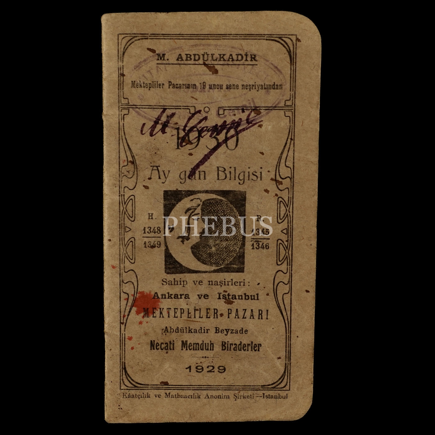 1930 AY GÜN BİLGİSİ, sahip ve naşiri: Mektepliler Pazarı (Abdülkadir Beyzade / Necati Memduh Biraderler), 1929, Kâatçılık ve Matbaacılık Anonim Şirketi, 7x13 cm...