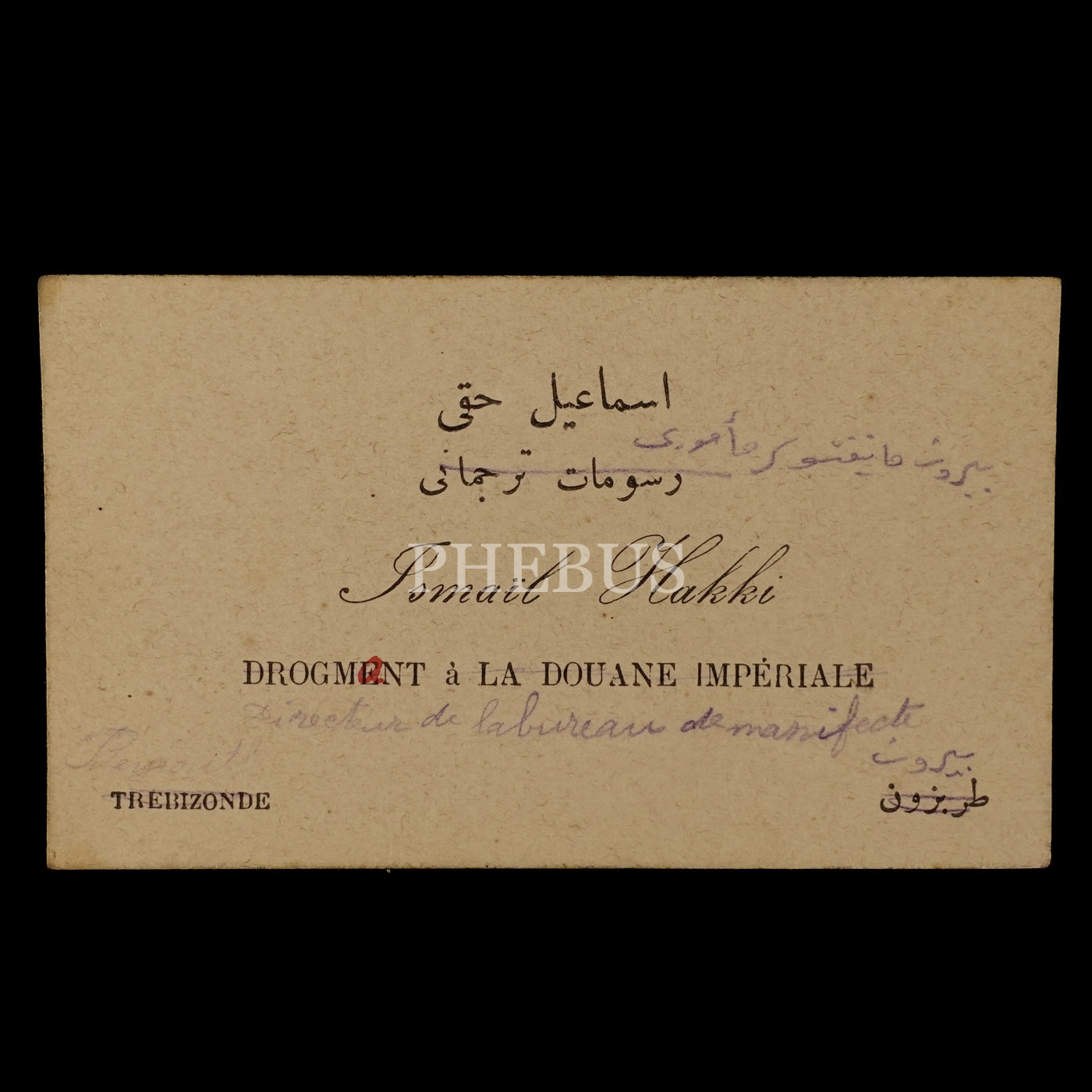 Rüsumat Tercümanı İsmail Hakkı Efendi´nin kartviziti, 10x6 cm...