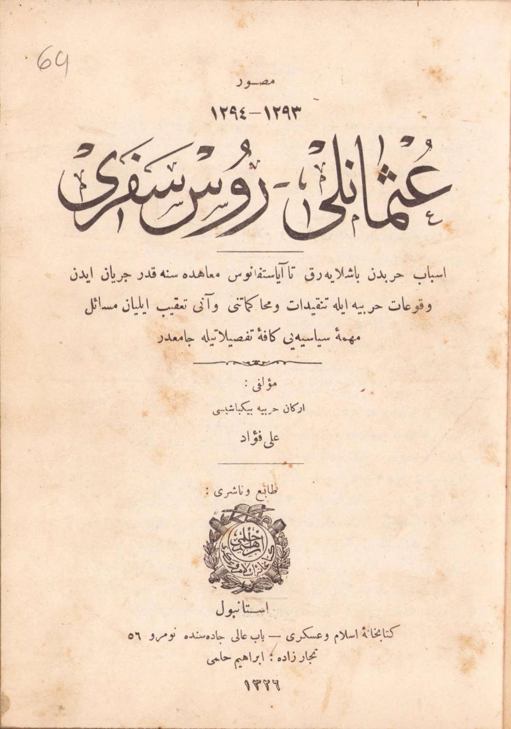 Osmanlıca Musavver Osmanlı Rus Seferi 1293 - 1294, Ali Fuad, Matbaa-i Osmani, İstanbul, 1326, iki cilt bir arada, resimli, 5 levha mevcut, 954 sayfa, 16x24 cm, ÖZEGE; 14435