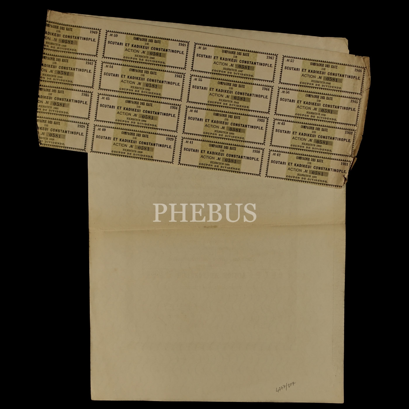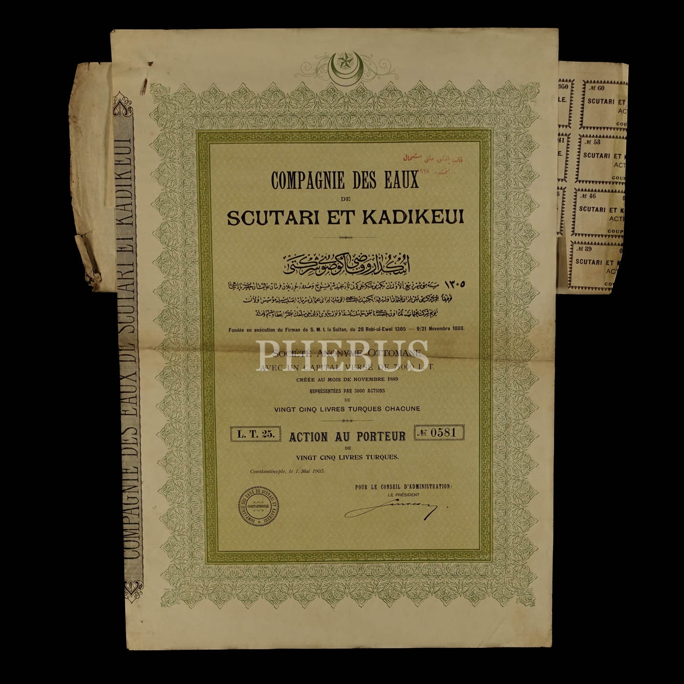 Üsküdar ve Kadıköy Su Şirketi (Compagnie des Eaux de Scutari & Kadikeuy) hisse senedi, 1905, 31x44 cm...