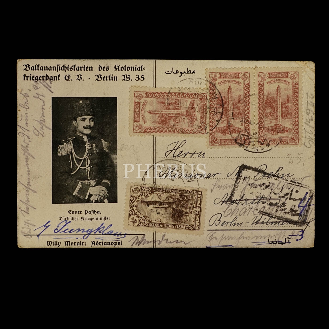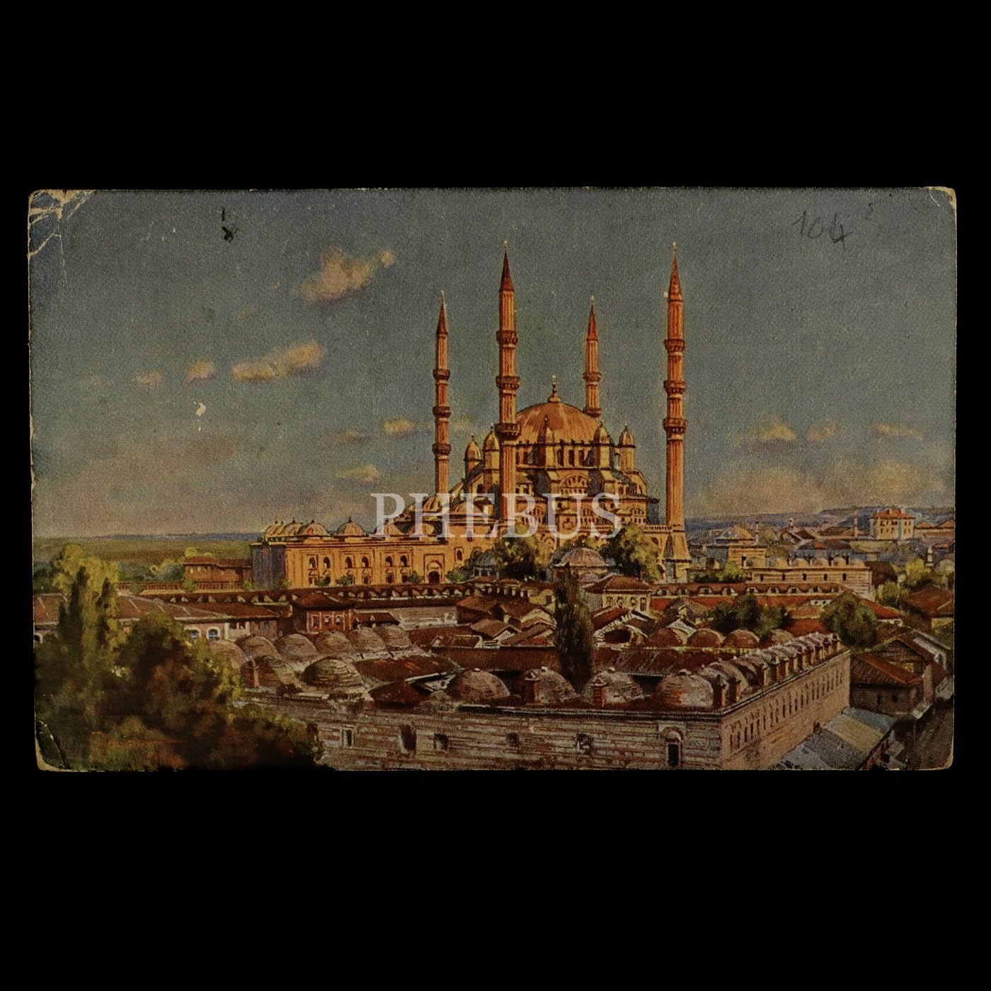 Ön yüzü Edirne Selimiye Camii, arka yüzü ise Harbiye Nazırı Enver Paşa görselli Alman baskı kartpostal, 14x9 cm...