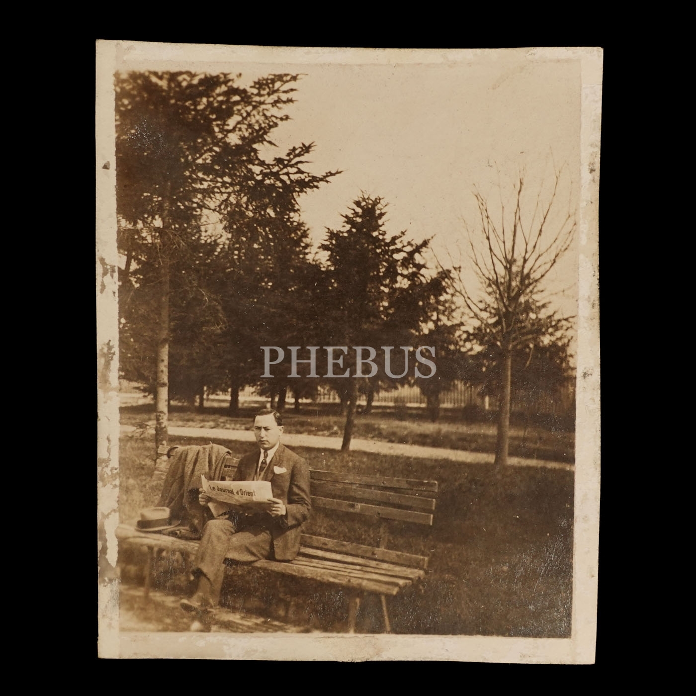 Bir bank üzerinde Le Journal d´Orient gazetesi okuyan beyefendi, 7x8,5 cm...