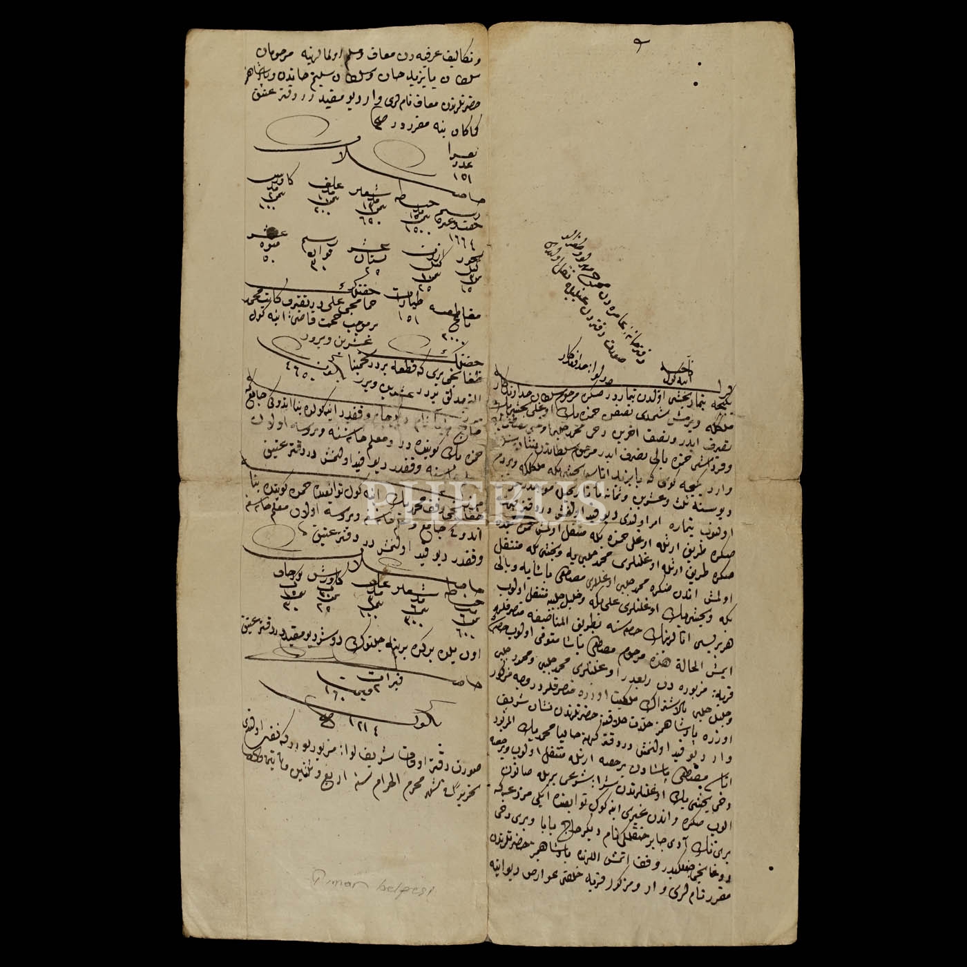 Bursa´da bulunan bir tımar arazisinin muhasebesi ile alakalı siyakat yazı ile kaleme alınmış evrak,1214, 22x33 cm...