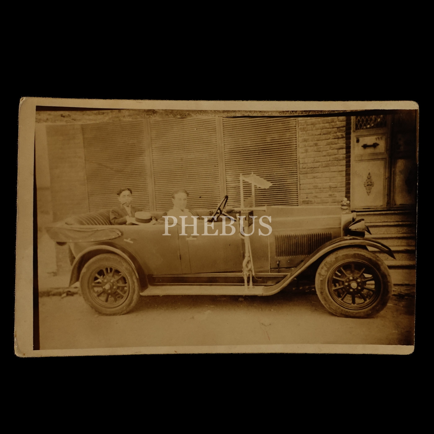 İki gencin otomobil içinde alınmış hatıra fotoğrafı, 14x9 cm...