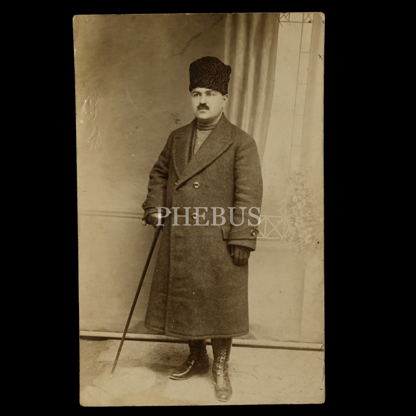 Kalpaklı beyefendinin stüdyo hatıra fotoğrafı, 14x9 cm...