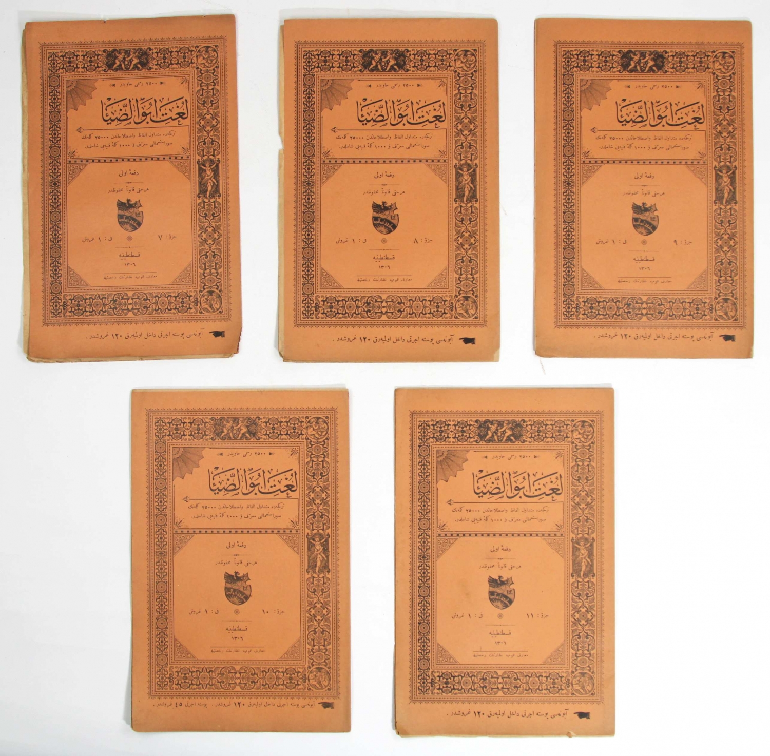 Osmanlıca Lugat-ı Ebuzziya mecmuası 7 - 11. sayıları bir arada, Konstantiniyye, 1306, resimli, her cilt 8 sayfa, 16x24 cm