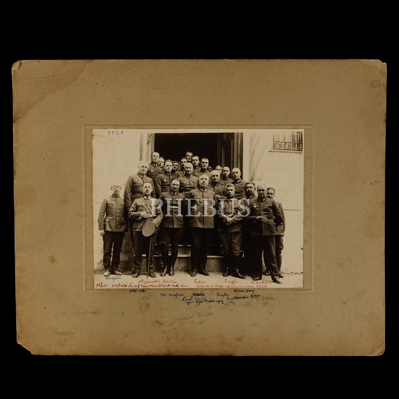 Fahrettin Altay ve subayların Harp Akademisi önünde aldırdıkları hatıra fotoğrafı, 1929, 30x24 cm...