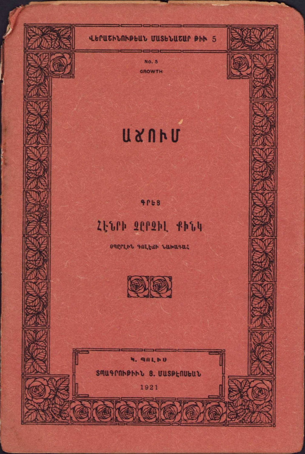 Ermenice kitap, 1921, arka kapak bir kenarı haliyle, 33 sayfa, 12x16 cm