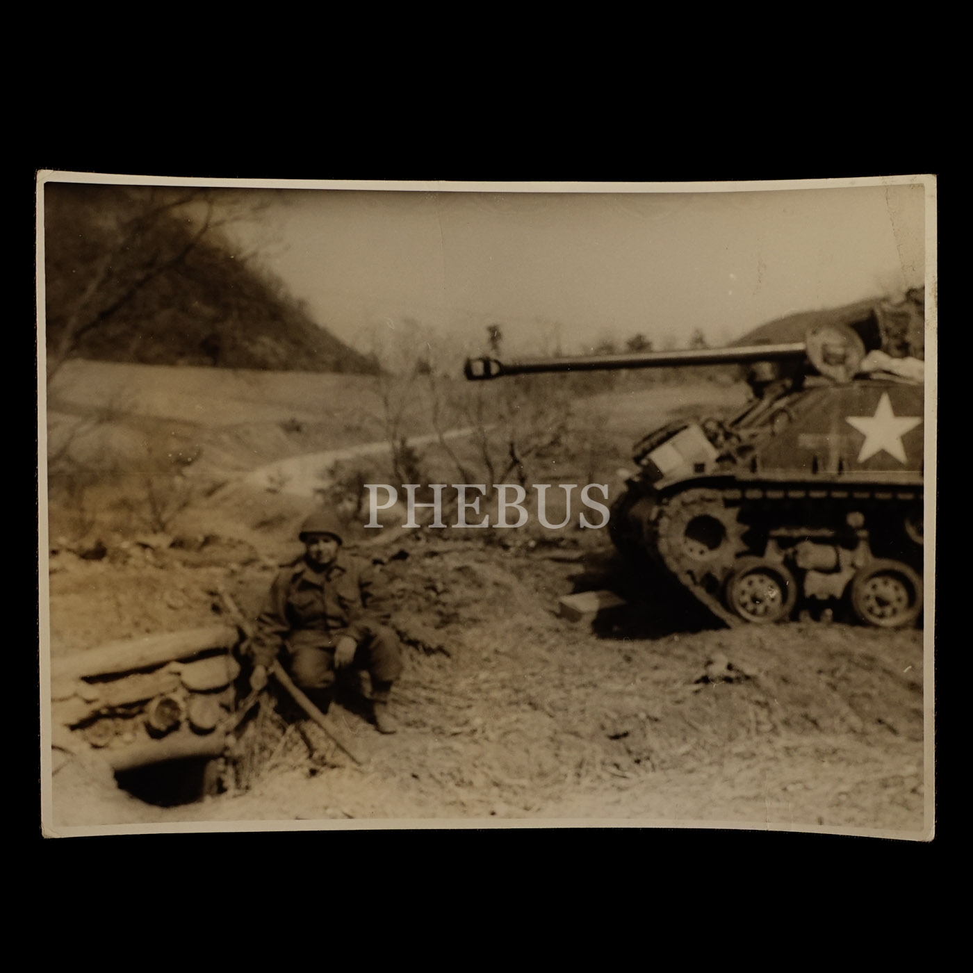 Kore Savaşı´nda bir tank önünde poz veren Türk askeri, 15x11 cm...