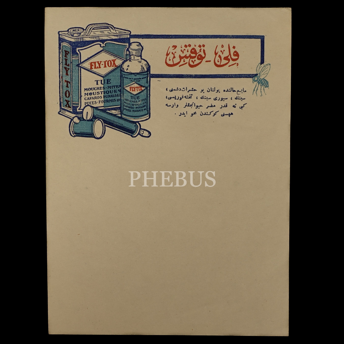 "Fly-Tox" marka haşere ilacı reklamlı, Osmanlıca reçete kağıdı, 16x12 cm...