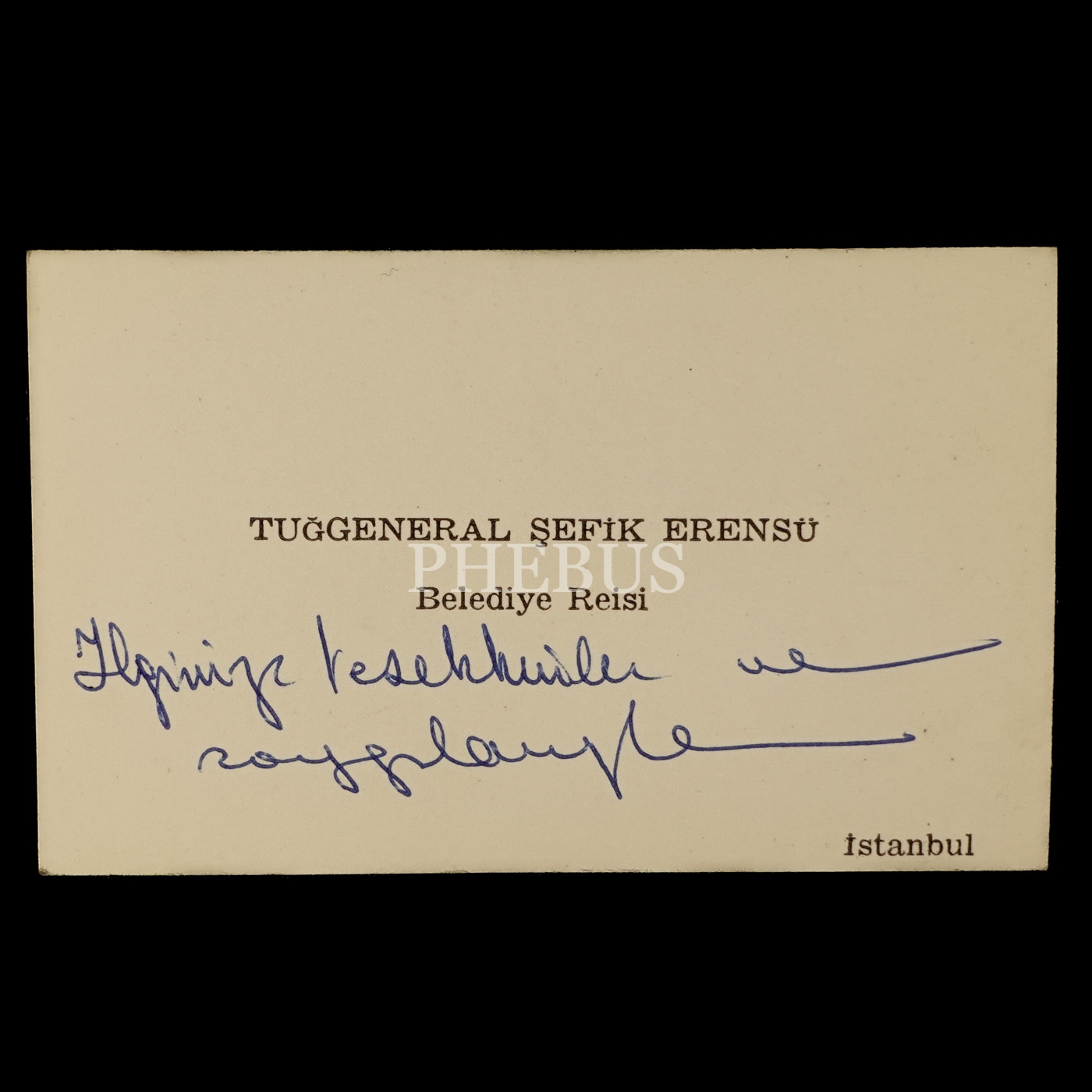 Belediye Reisi Tuğgeneral Şefik Erensu´nun kartviziti, 9x6 cm...