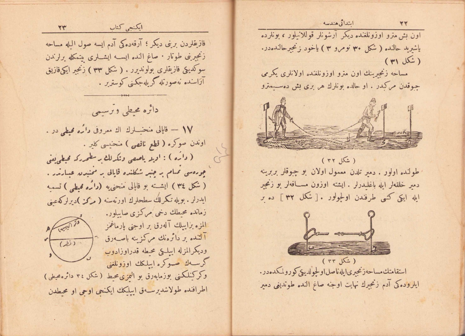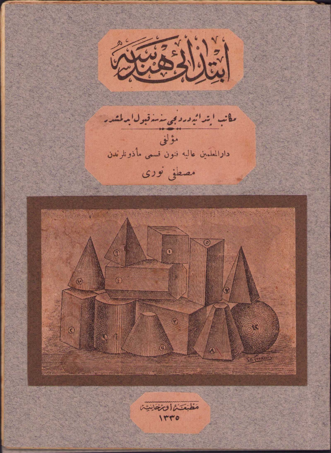 Osmanlıca İbtidai Hendese, ikinci kitap - dördüncü senesine kabul edilenler için, Mustafa Nuri, Orhaniye Matbaası, 1335, resimli, 64 sayfa, 13x17 cm