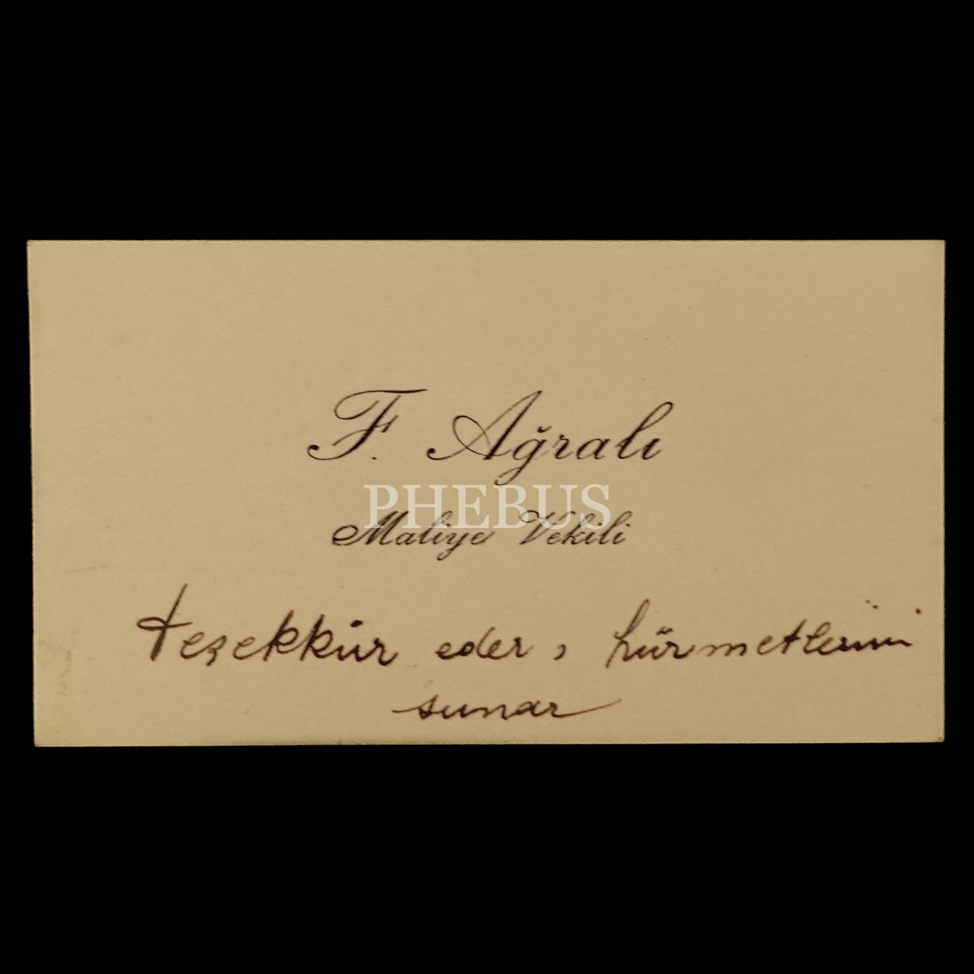 Maliye Vekili Fuat Ağralı´nın kartviziti, 8x5 cm...