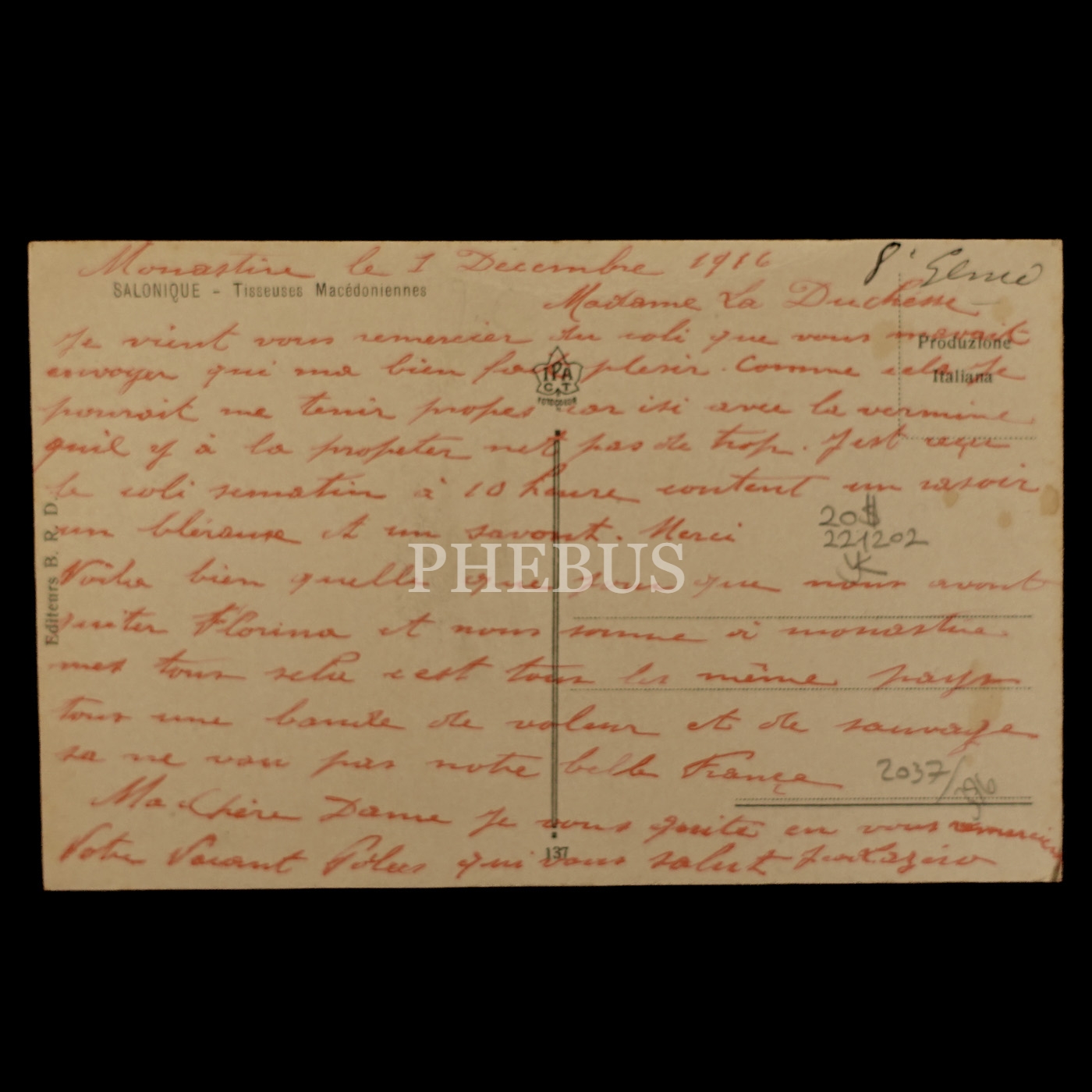 Makedonya´daki dokumacılar, "Tisseuses Macédoniennes", ed.: B.R.D., 14x9 cm...