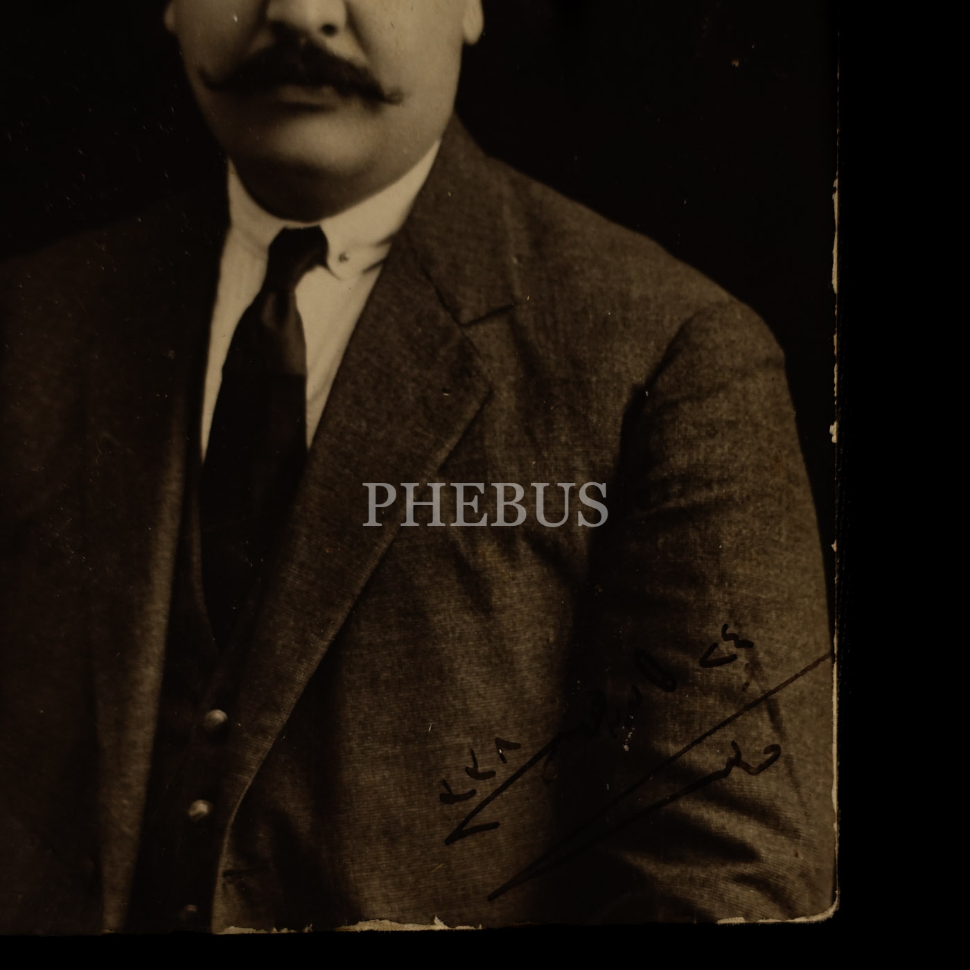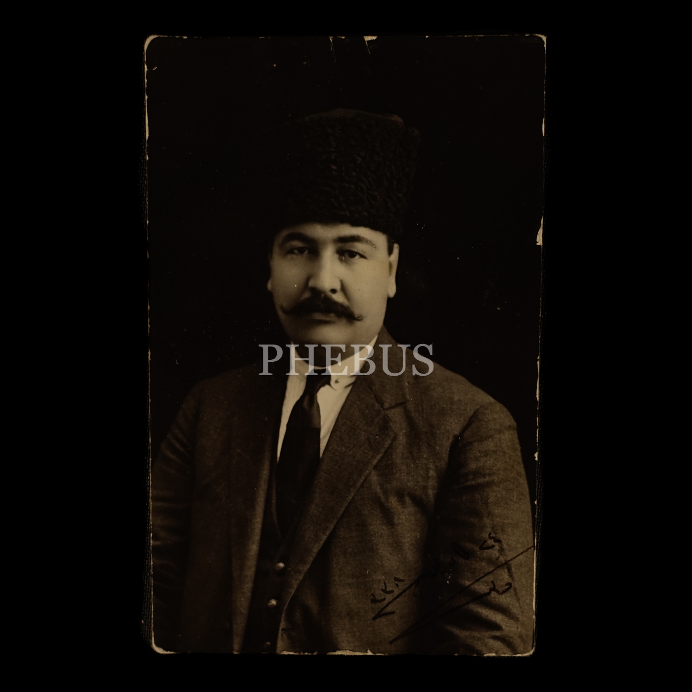 Kalpaklı ve şık giyimli beyefendinin imzalı fotoğrafı, 24 Kanunisani 1338, 9x13 cm...