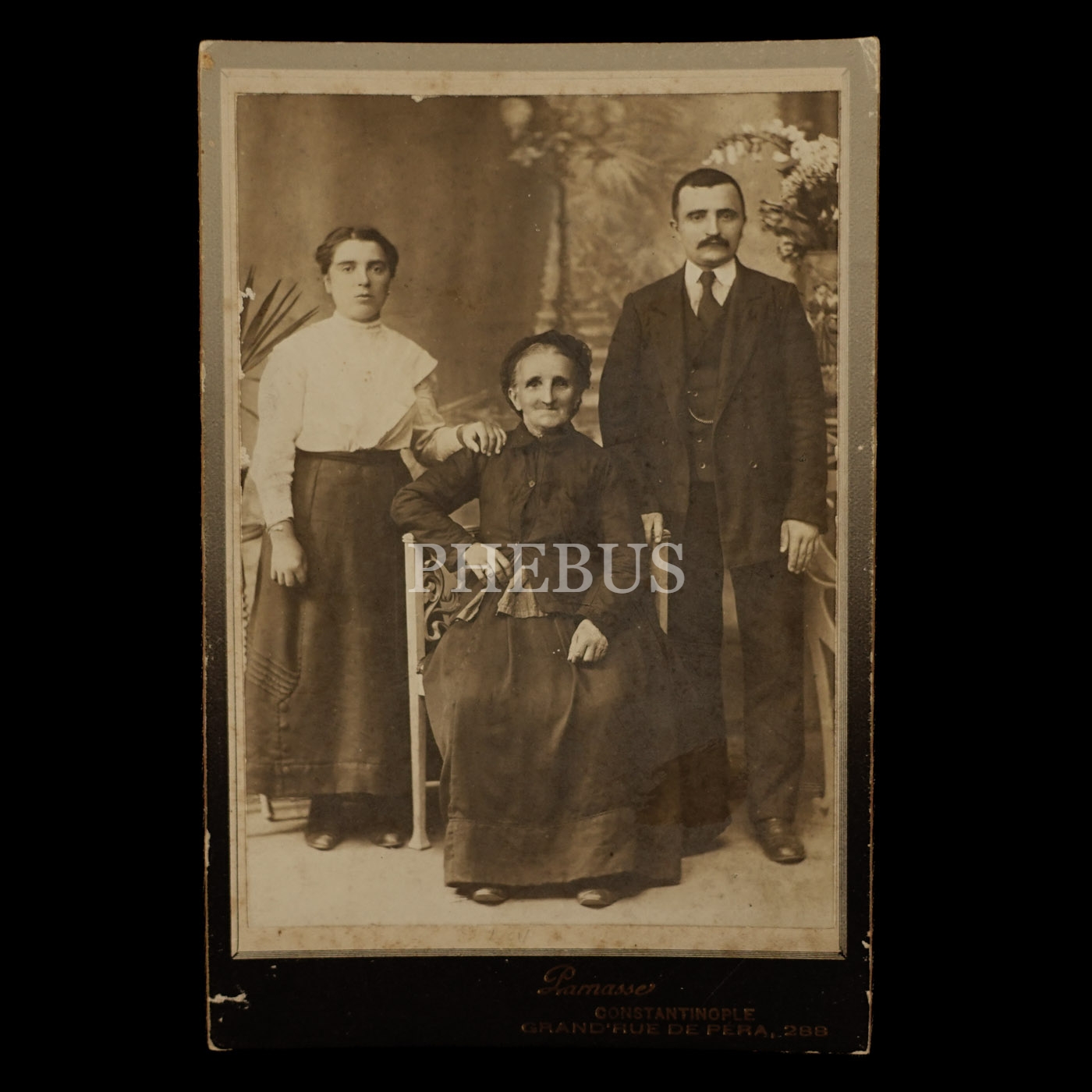 Gayrimüslim bir ailenin stüdyo hatıra fotoğrafı, Parnasse Fotoğrafhanesi, Pera, 11x16 cm....