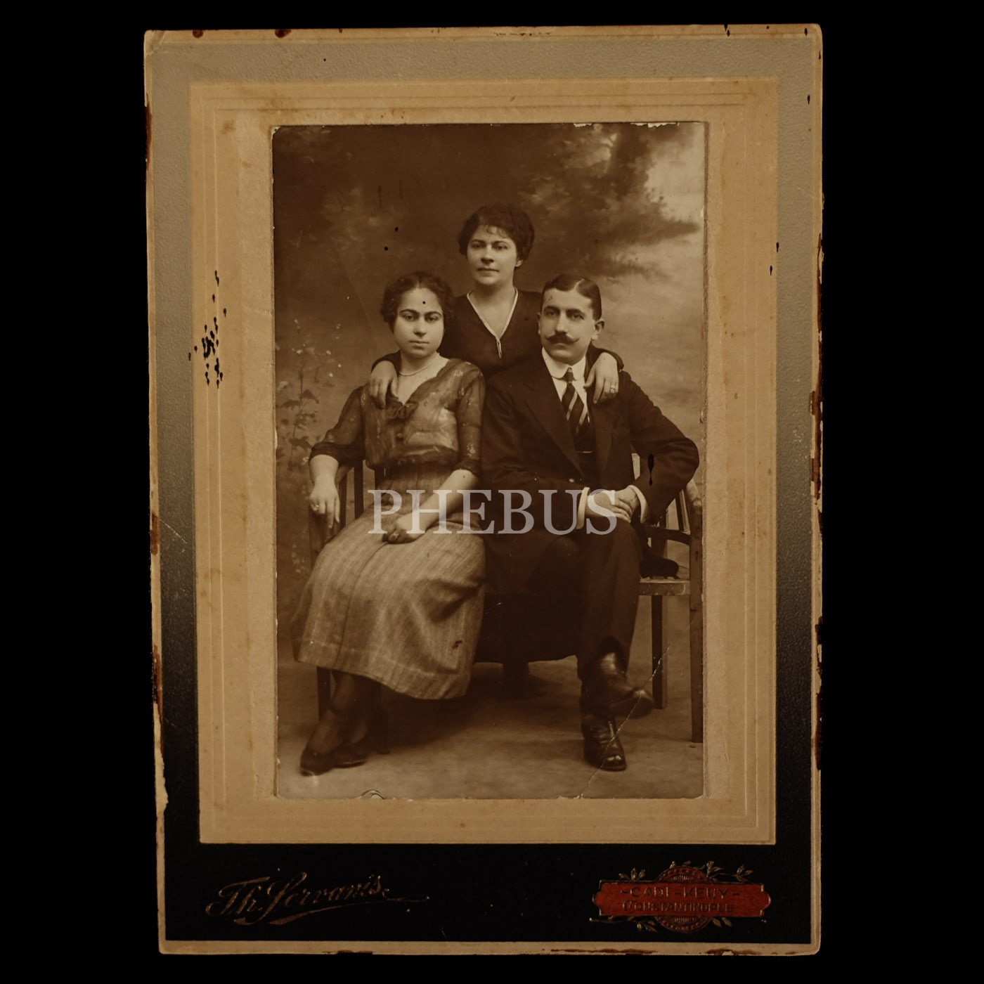 Gayrimüslim bir ailenin stüdyo hatıra fotoğrafı, Th. Servanis Fotoğrafhanesi, Kadıköy, 14x19 cm....