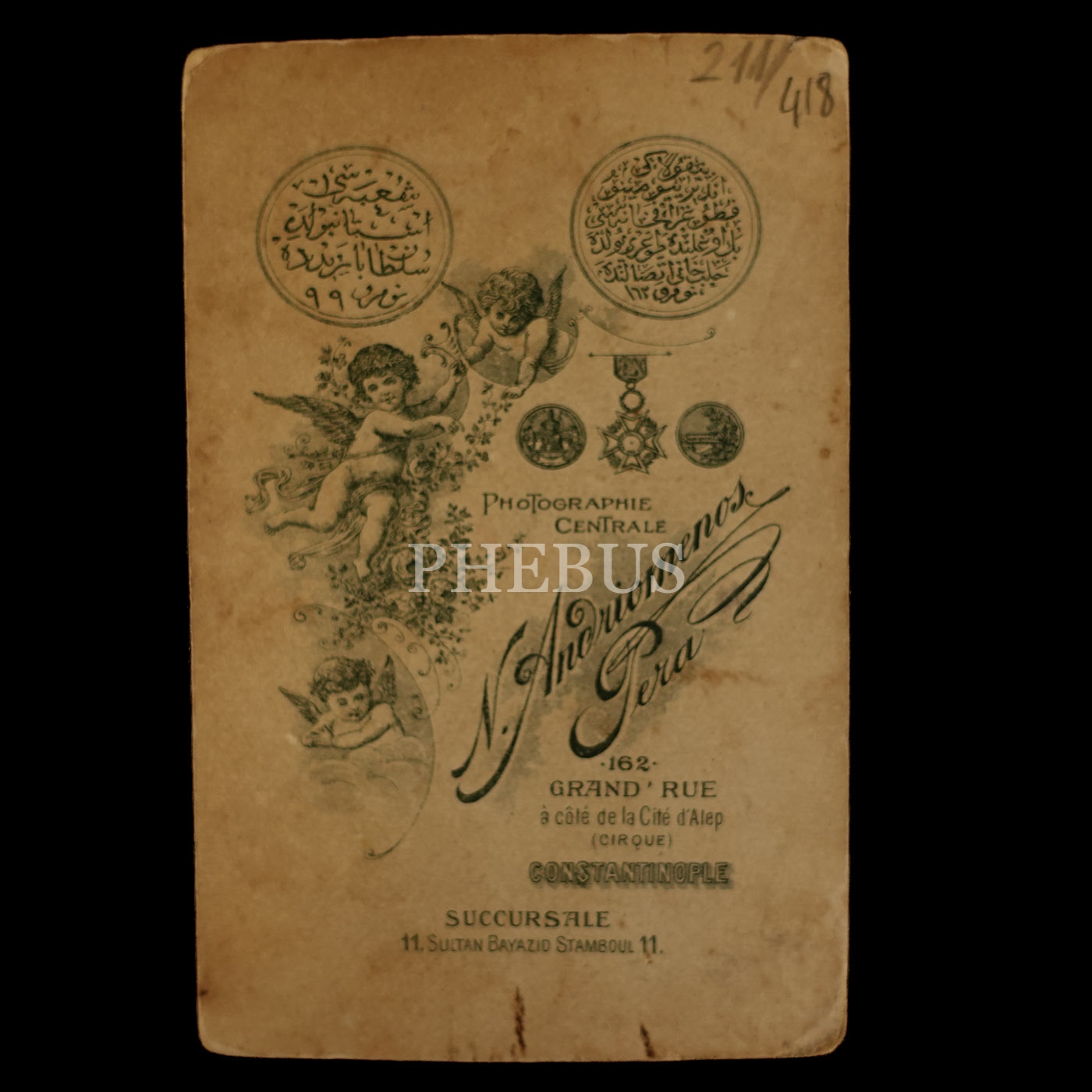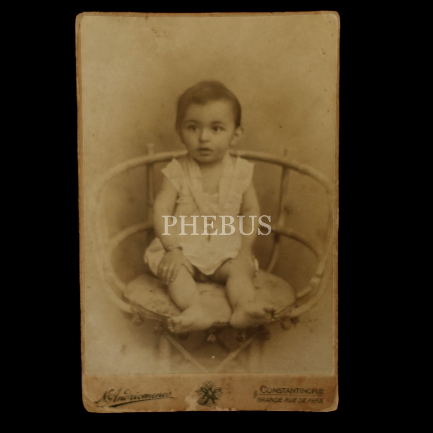Bir kız çocuğunun stüdyo hatıra fotoğrafı, Nicolas Andriomenos Fotoğrafhanesi, Pera, 9x13 cm...
