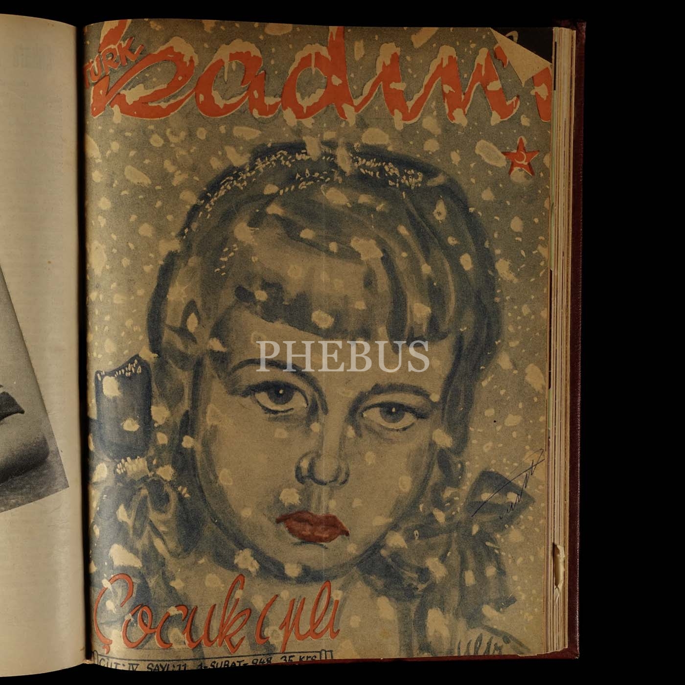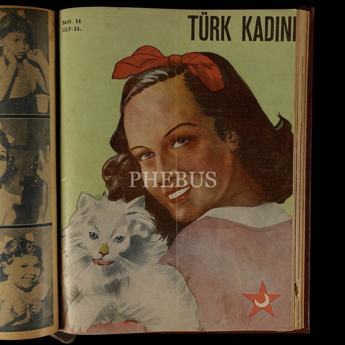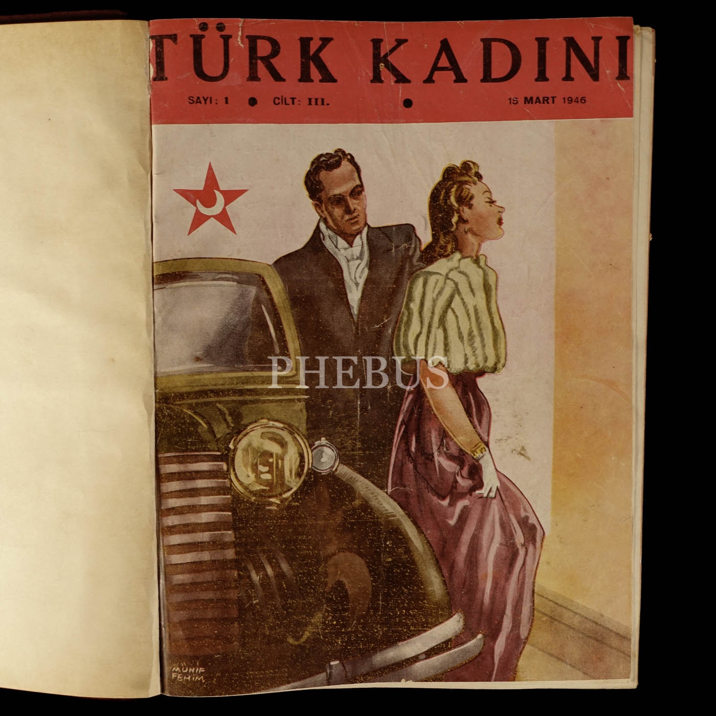 TÜRK KADINI dergisinin 1946 ile 1948 tarihleri arasında yayımlanan dört cildinin ilk 12 sayısı, 24x12 cm...