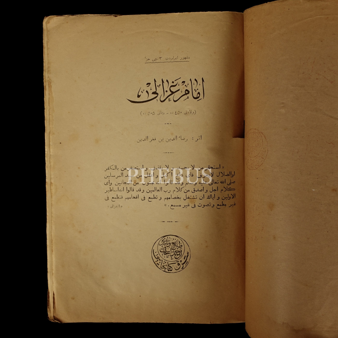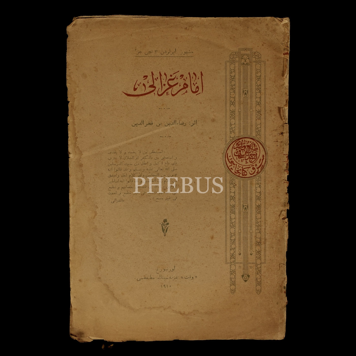 İMAM GAZALİ (Meşhur Erler´den 3. Cüz), Rızaeddin b. Fahreddin, 1909, Vakit Matbaası (Orenburg, Rusya), 96 sayfa, 17x26 cm...