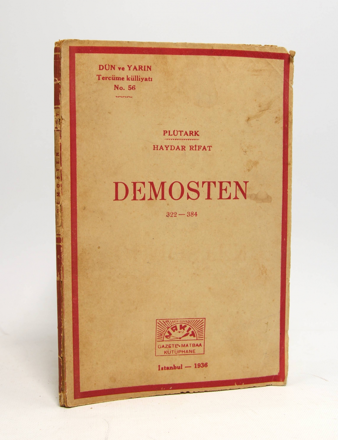 Demosten 322 - 384, Plutark Haydar Rifat, İstanbul, 1936, 46 sayfa, 12x18 cm