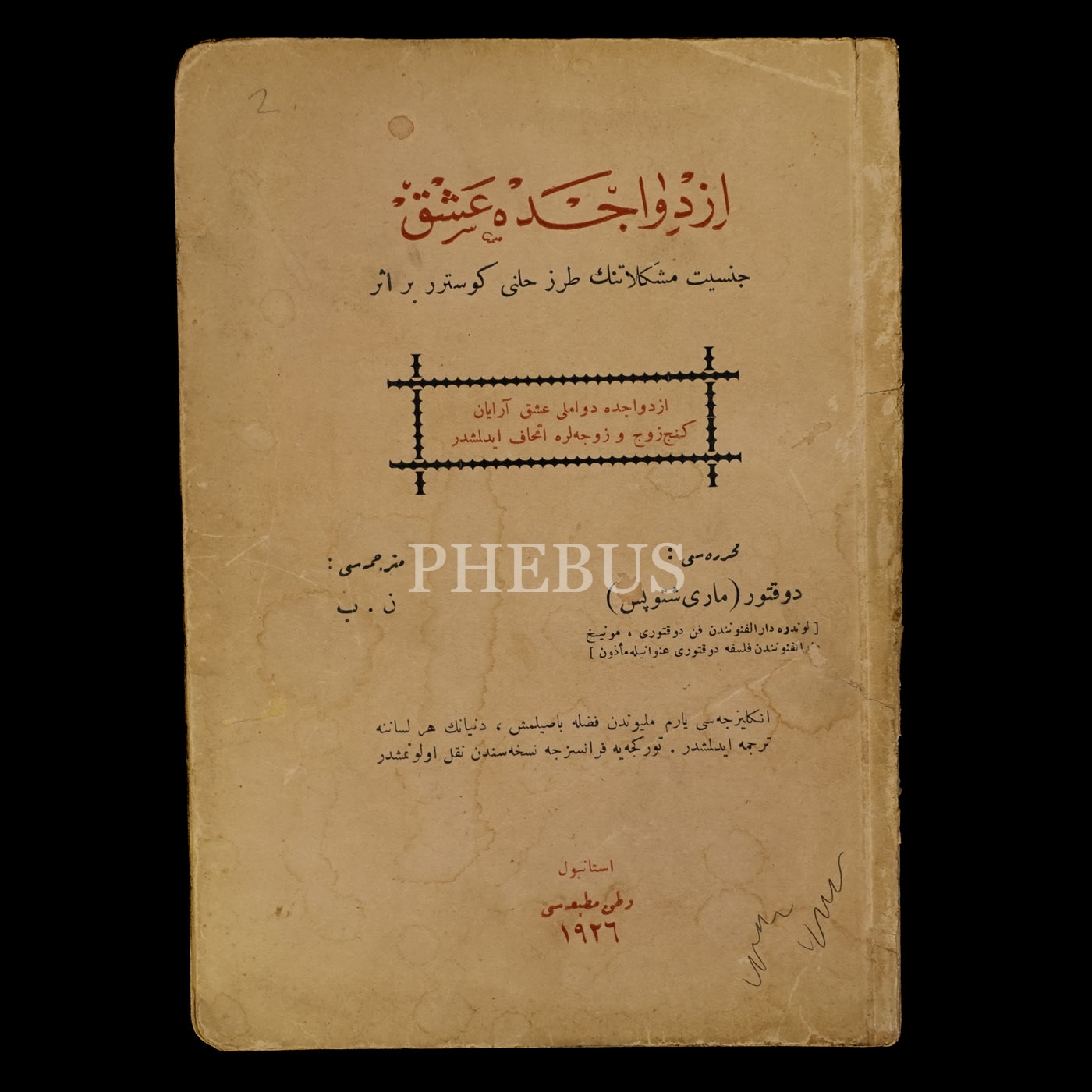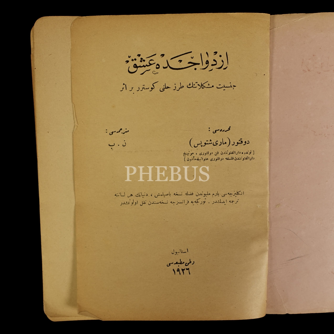 İZDİVAÇTA AŞK, Marie Stopes, (çeviren: N. B. [Ahmet Emin Yalman]), 1926, Vatan Matbaası, 172 sayfa, 14x19 cm...
