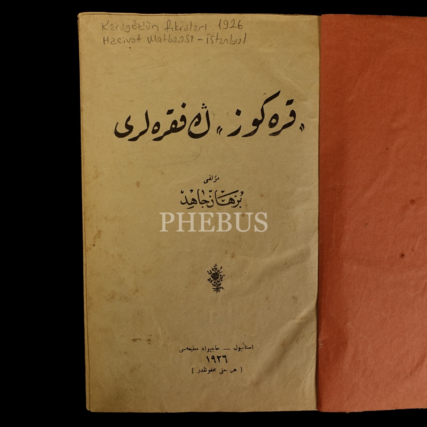 KARAGÖZ´ÜN FIKRALARI, Burhan Cahid (Morkaya), 1926, Hacivat Matbaası, 162 sayfa, 14x21 cm...