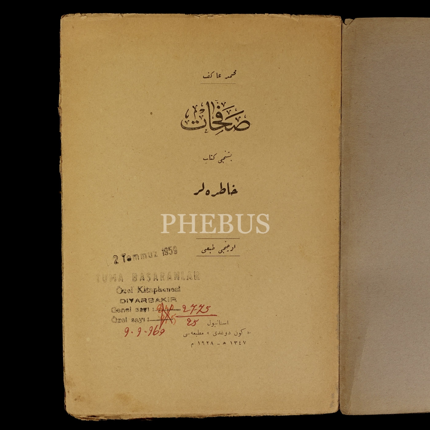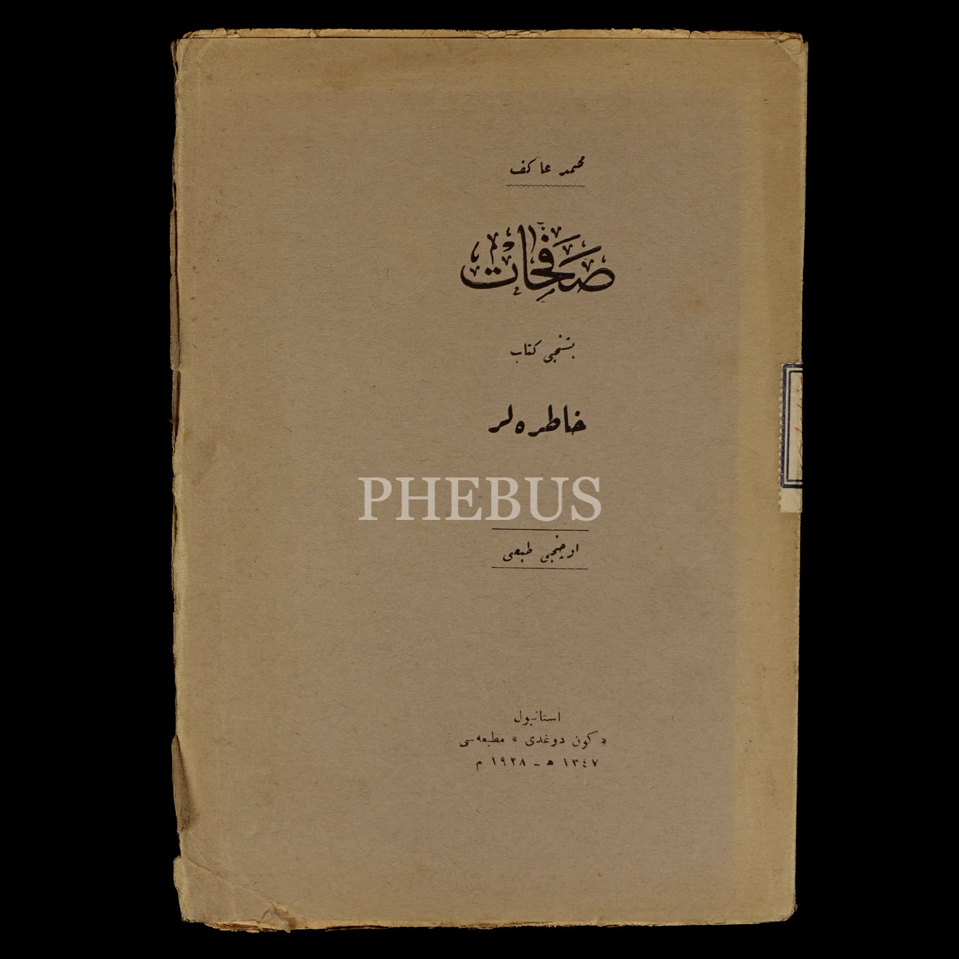 SAFAHAT (Beşinci Kitap - Hatıralar), Mehmed Akif Ersoy, 1928, Gündoğdu Matbaası, 87 sayfa, 15x21 cm...