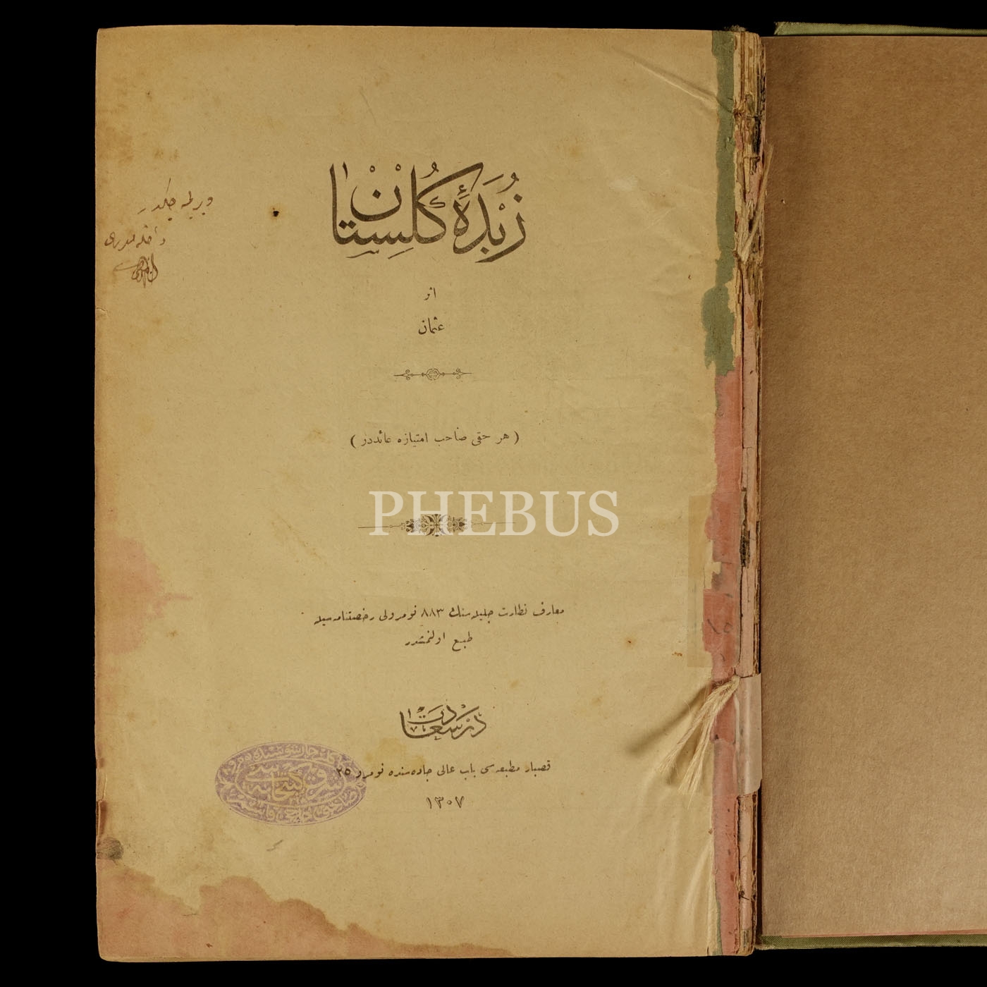 ZÜBDE-İ GÜLİSTAN, Muhiddin-i Sadi-i Şirazi, (Çeviren: Osman), 1307, Kasbar Matbaası, 351 sayfa, 20x27 cm...