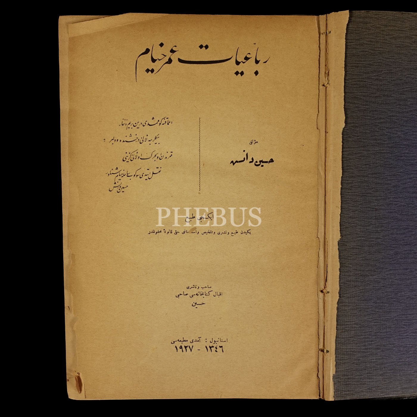 RÜBAİYYAT-I ÖMER HAYYAM, Ömer Hayyam, (Çeviren: Hüseyin Daniş), 1927, Amedi Matbaası, 320 sayfa, 17x25 cm...
