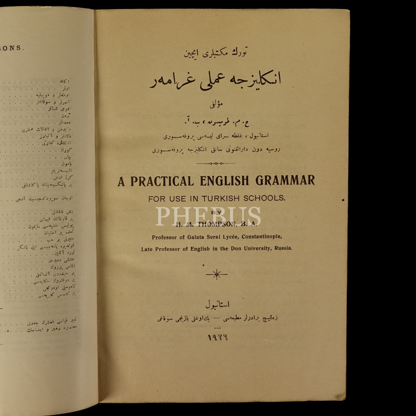 TÜRK MEKTEPLERİ İÇİN İNGİLİZCE AMELİ GRAMMER, H. M. Thompson, 1926, Zelliç Biraderler Matbaası, 295 sayfa, 16x23 cm...