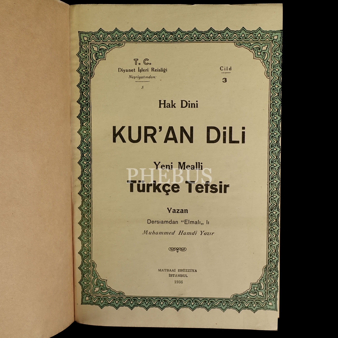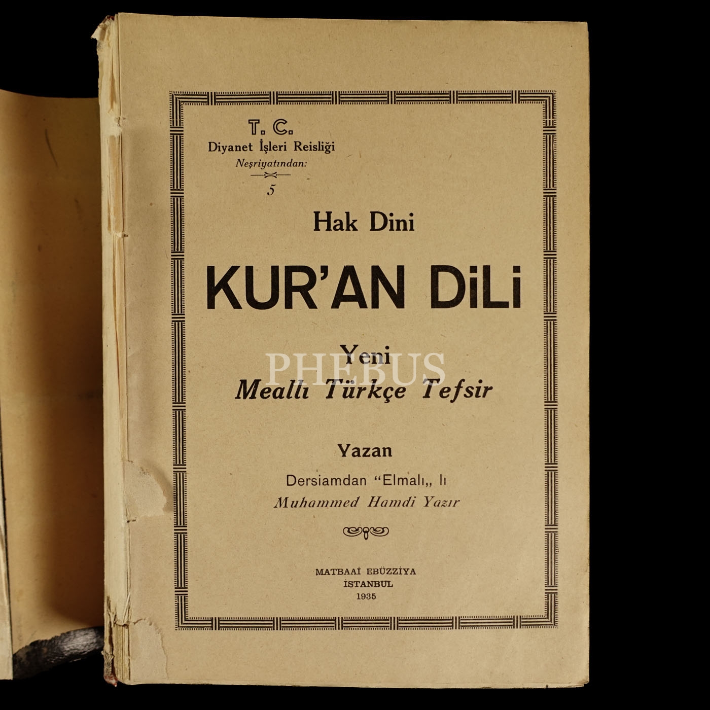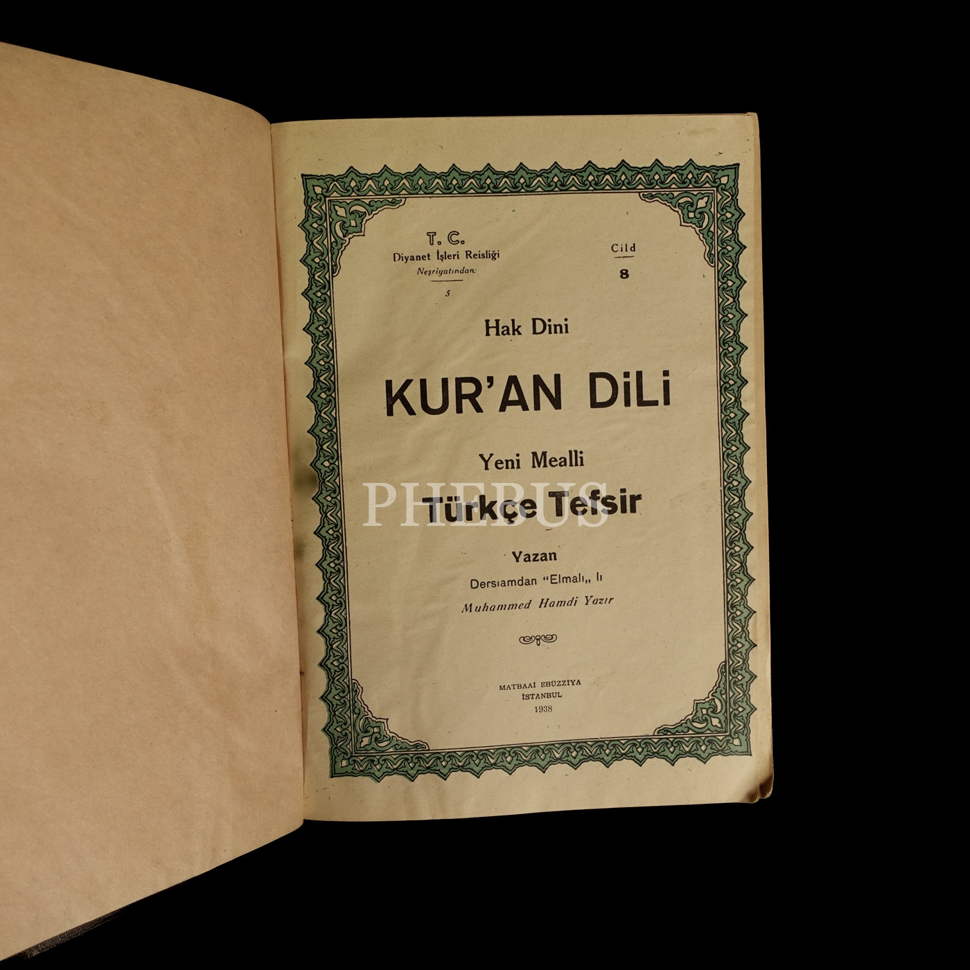 HAK DİNİ KUR´AN DİLİ YENİ MEALLİ TÜRKÇE TEFSİR (8 cilt takım), Elmalılı Hamdi Yazır, 1935, T.C. Diyanet İşleri Reisliği Neşriyatı, 17x23 cm...