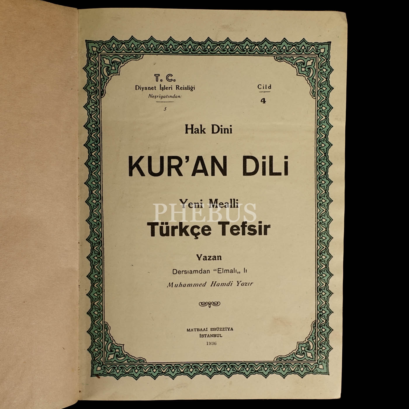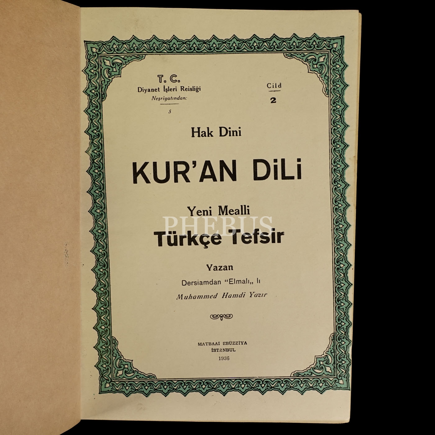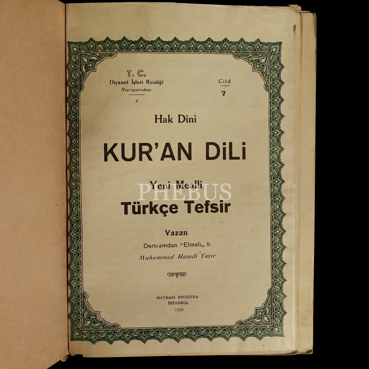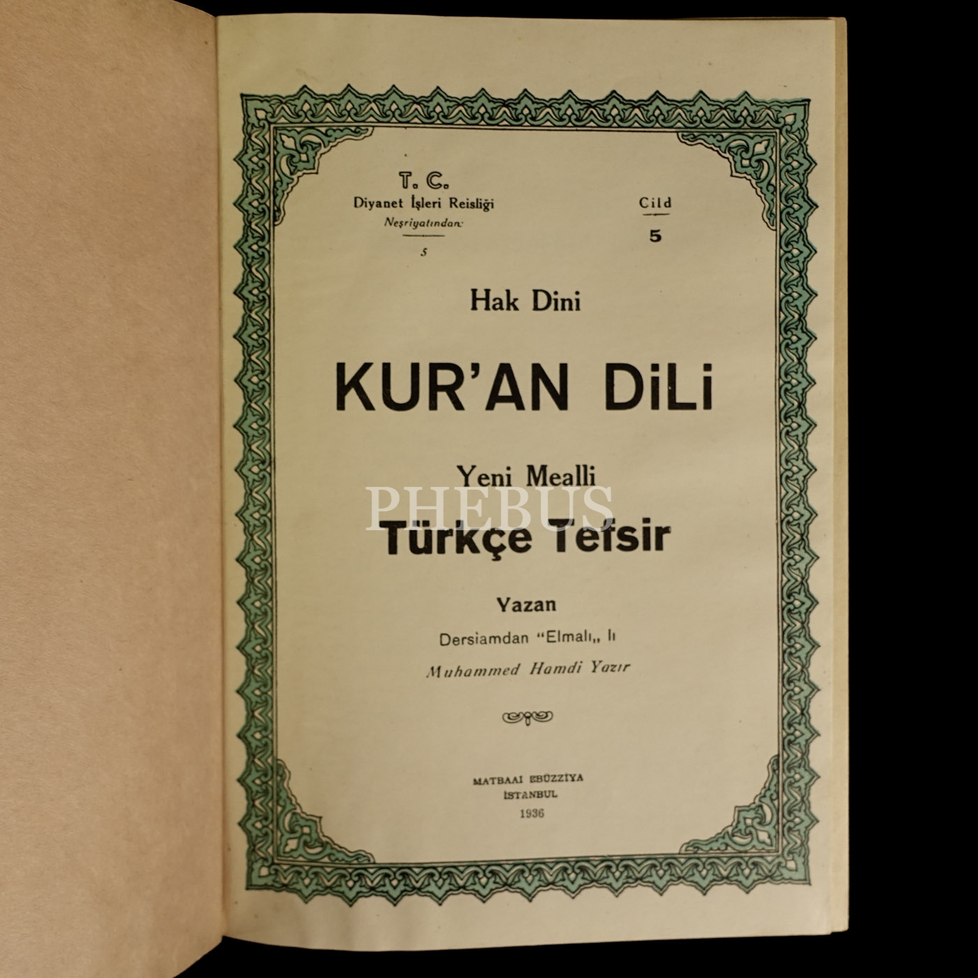 HAK DİNİ KUR´AN DİLİ YENİ MEALLİ TÜRKÇE TEFSİR (8 cilt takım), Elmalılı Hamdi Yazır, 1935, T.C. Diyanet İşleri Reisliği Neşriyatı, 17x23 cm...