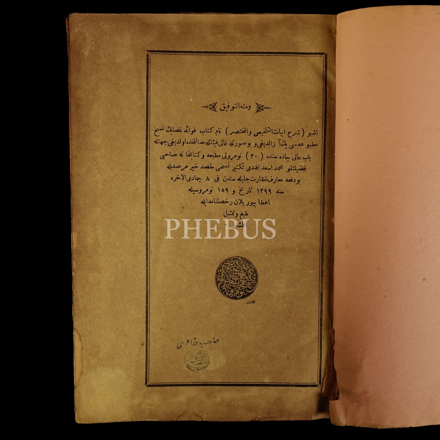 ŞERH-İ EBYATÜ´T-TELHİS VE´L-MUHTASAR, Mustafa İsameddin, 1299, Matbaa ve Kitabhane-i Mehmed Esad, 272 sayfa, 16x24 cm...