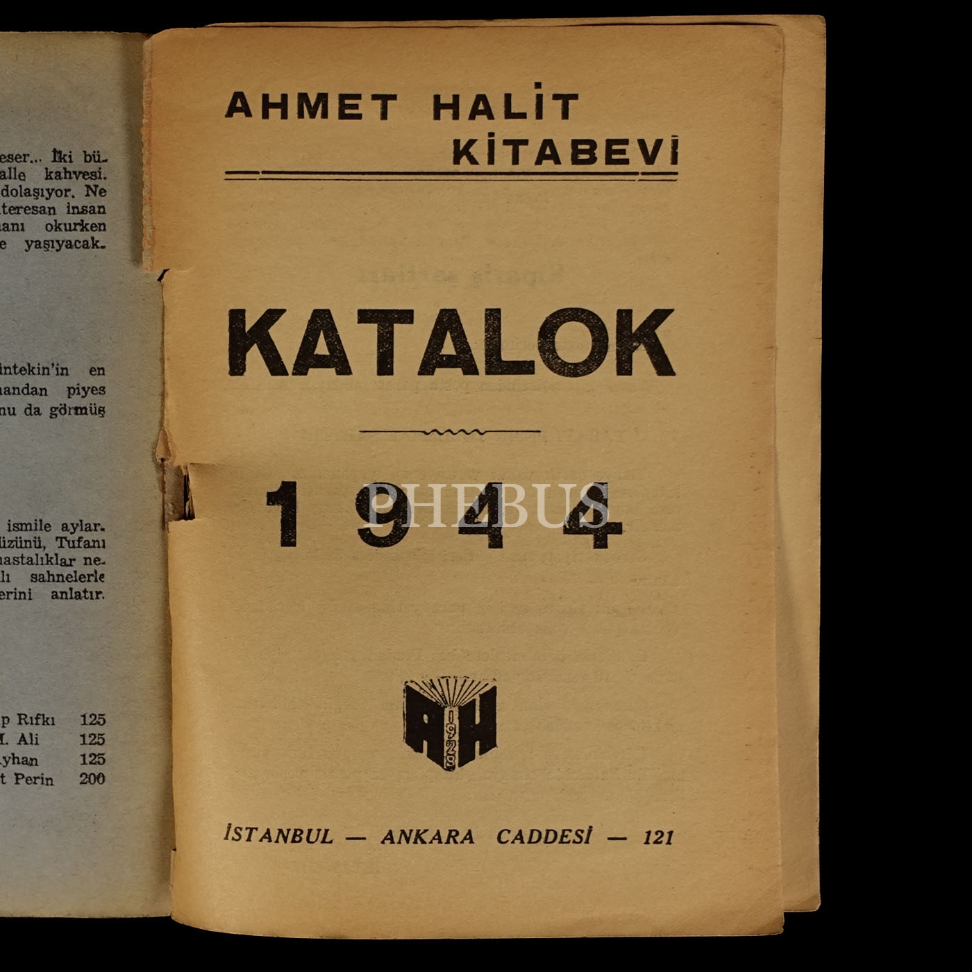 KATALOK 1944, Ahmet Halit Kitabevi, Yeni Sabah Matbaası, 32 sayfa, 14x20 cm...